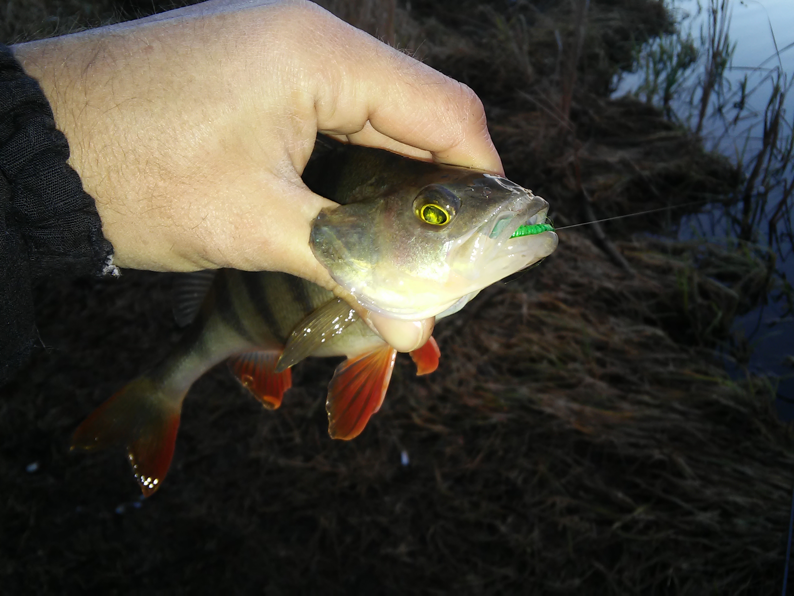 Сегодня решили со своим знакомым выехать на секретные озера, за жирными окунями и потестить плавающих Джавастиков!С утра решил поджиговать,но зароботал всего одну поклевку,мой так сказать ученик,успел сбить три жирных окуня на сплитшот!Решаю не испытывать судьбу,перевязуюсь тоже, и погнали!Мелкого окуня практически не было,все за ладонь,две ладони!Вчера выливал заказ и себе немного отлил Джавиков, в расцветках кола,масло,салат,фиолет,бледно зеленый.Работали все,но заметел такую тенденцию,одна расцветка вылавливала 3-4 окуня и молчок,ставляю другую и опять 3-4 окуня и так ганял 5 расцветок по кругу целый день.Погодка сегодня выпала на славу,штиль целый день,грех сегодня было не выехать на рыбалку,даже мелкий дождь после обеда не испортил настроение.Да,воду сегодня горнули "мама не горюй"ели назад перешел в сапогах.Сегодня была самая результативная рыбалка за этот год,как по количеству,так и качеству,немного окуней поехало в Кременчуг:).Сплитшот и Джавастик рулят полюбому!:)
