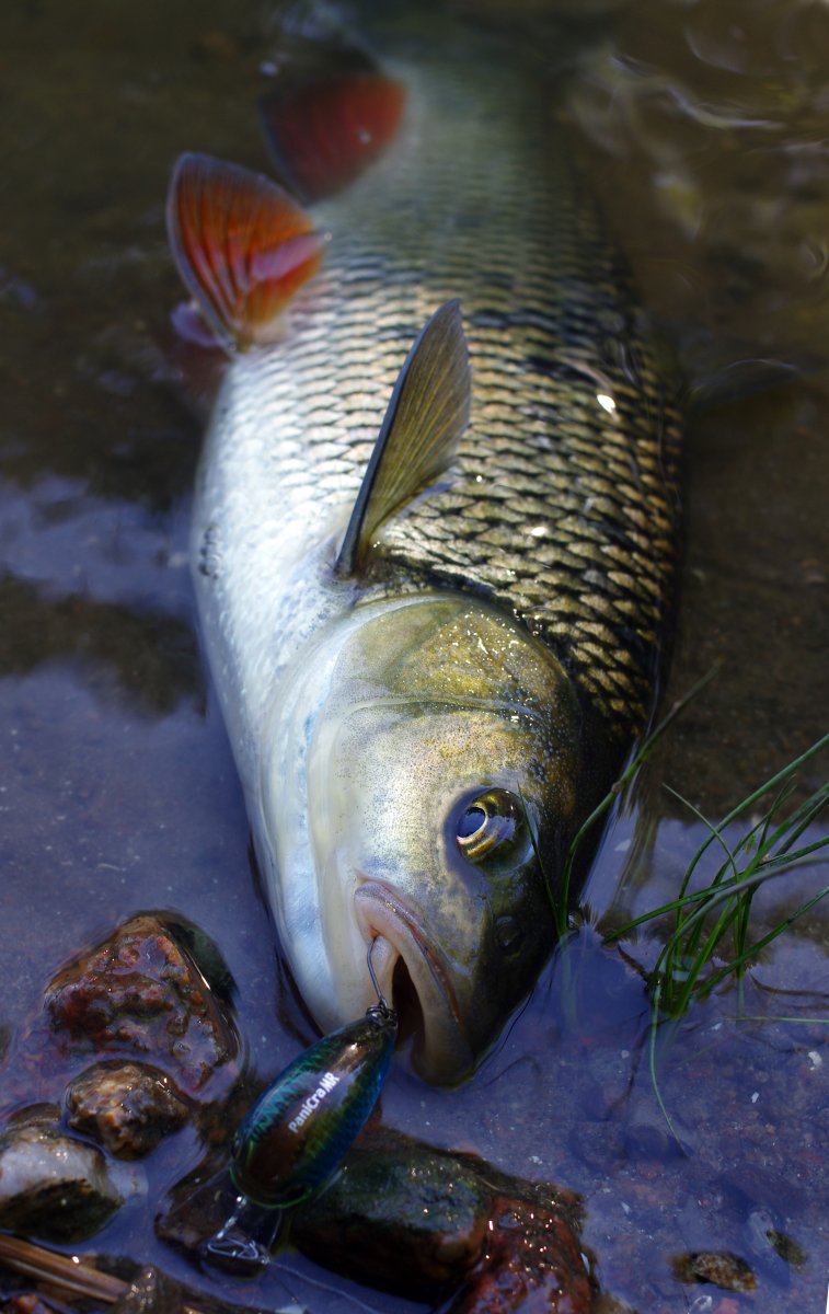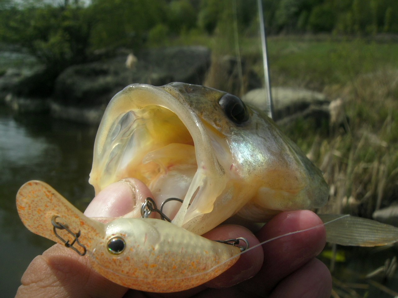 Кроме кренков периодически работали и колебалки тёмного цвета. Основная задача провести их после заброса апстрим максимально близко к подводным препятствиям, периодически чиркая по ним. Как правило, после такого «чирка» и следовала поклёвка.