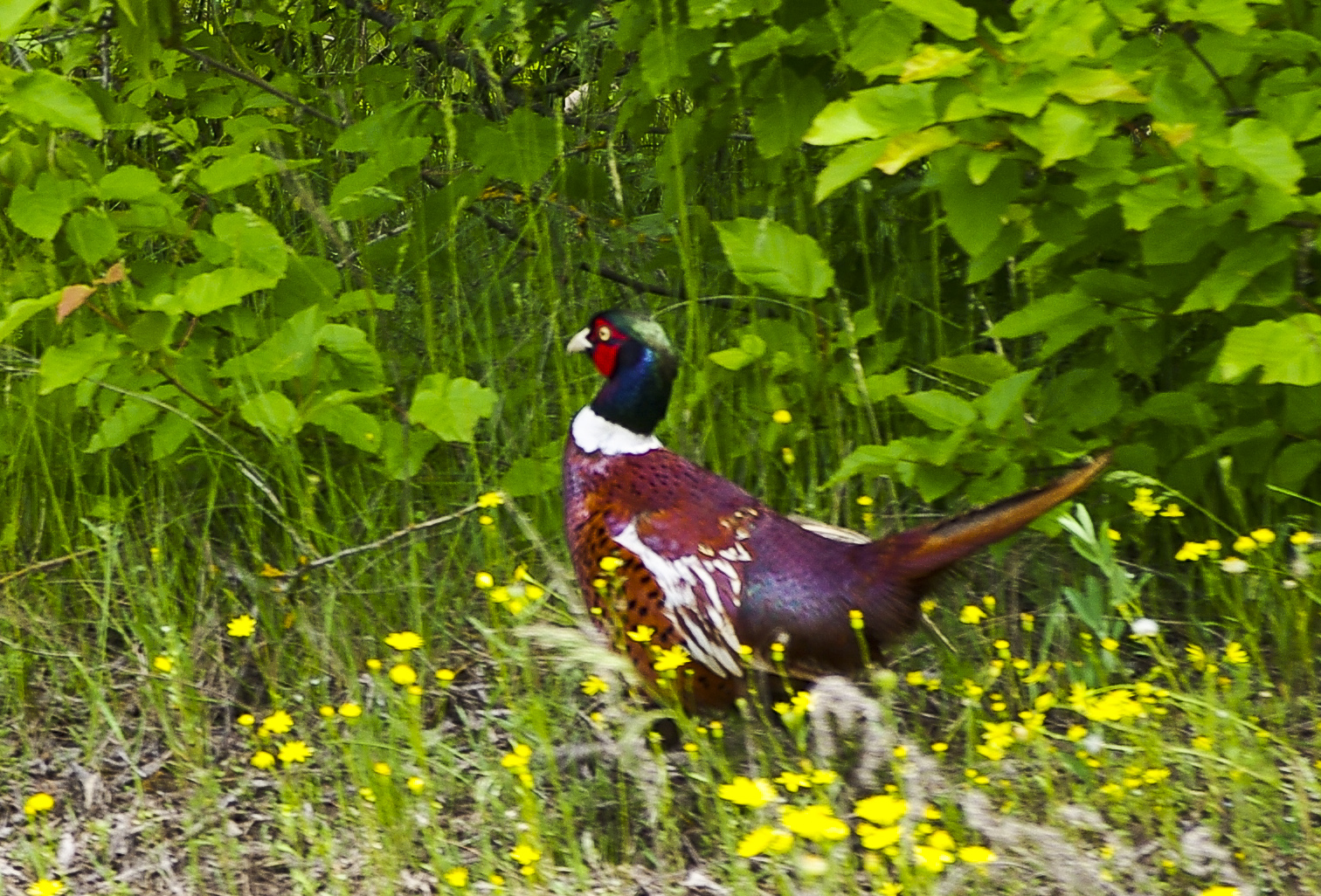 Кстати фазаны в тех краях совсем страх потеряли - от машины даже не шугаются. Этот был сфотографирован с расстояния 5 метров.