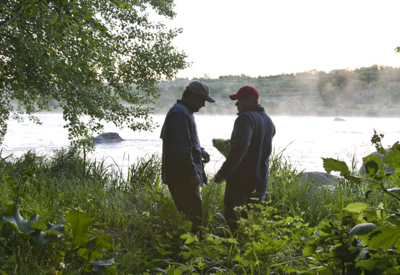 Поскольку видно что вода падает, то я ухожу вниз от лагеря к сливу с переката, а ребята устремляются вверх, кто на мельничный канал, кто на точку его впадения в основное русло реки.