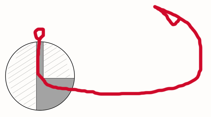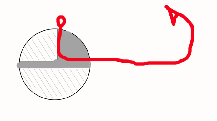 Шарик в разрезе, благодаря пропилу заводится крючок + можно выбирать положение крючка относительно груза, подгибая крючок.