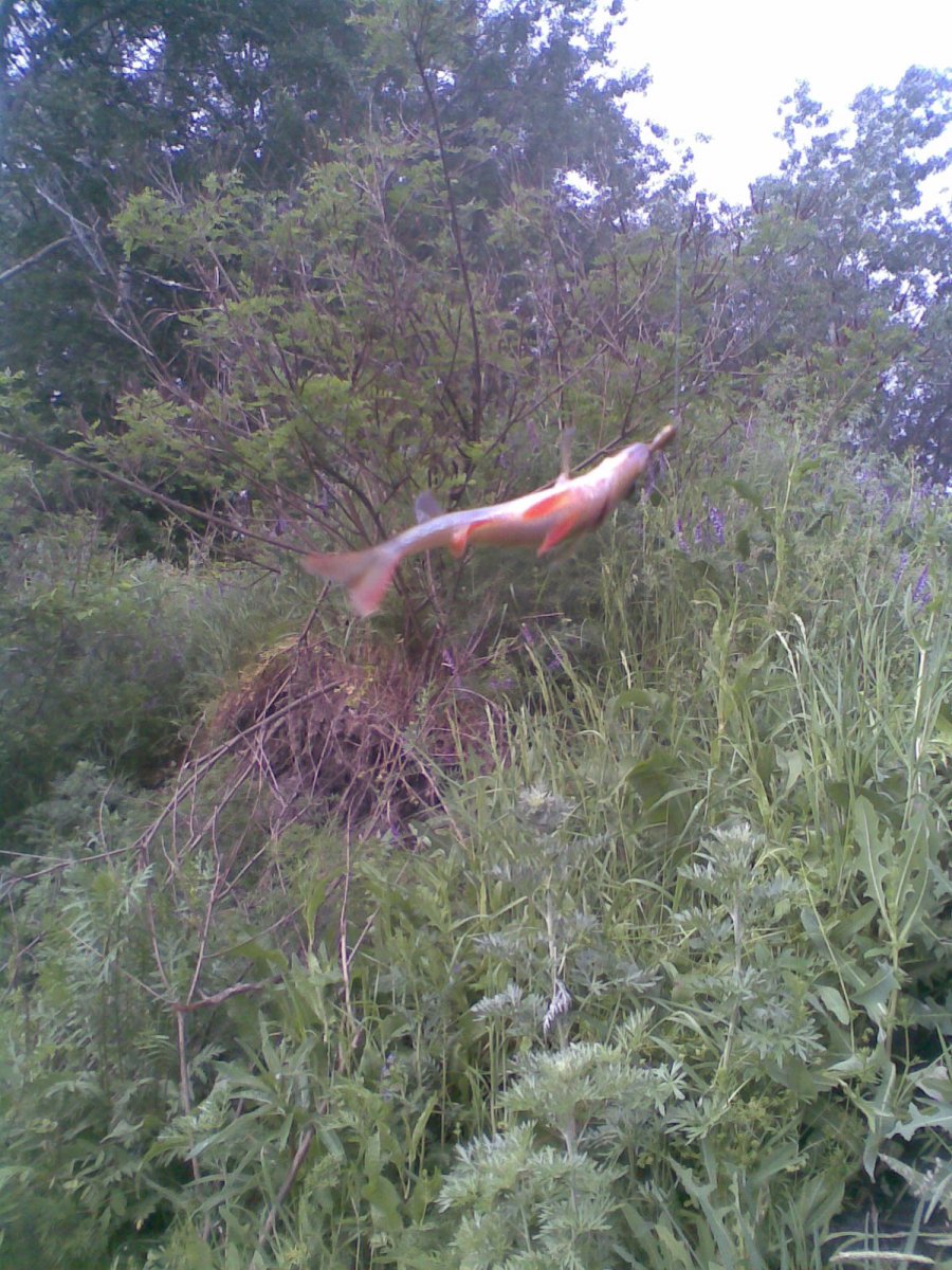 По приезду тесть настроен на коропа, берем его снасти и на ставок. Т.к. я почти не ловлю карпа, то снастей своих не имел, закинули то что было в наличии. Карп не клевал. У тестя было насколько удочек, в том числе, подаренный мною мах нью хантер 6 м. И вот от безделья, решаю половить на кивок. Собираю удилище, однако незадача, мормышек то я и не взял. Решаю сделать из подручных средств. Беру тонкий крючок с длинным цевьем и свинцовую дробинку. Пытаюсь ее нацепить на цевье крючка. Не понравилось. Переделываю. Вяжу крючок, а грузок на леску и спускаю до самого крючка. О-о-о!! Будем пробовать. Цепляю червяка и вперед. Сразу скажу, что удилище нью хантер очень понравилось в плане рыбалки на боковой кивок. Легкое, строй быстрый, ну и 6 метров лучше чем 5.