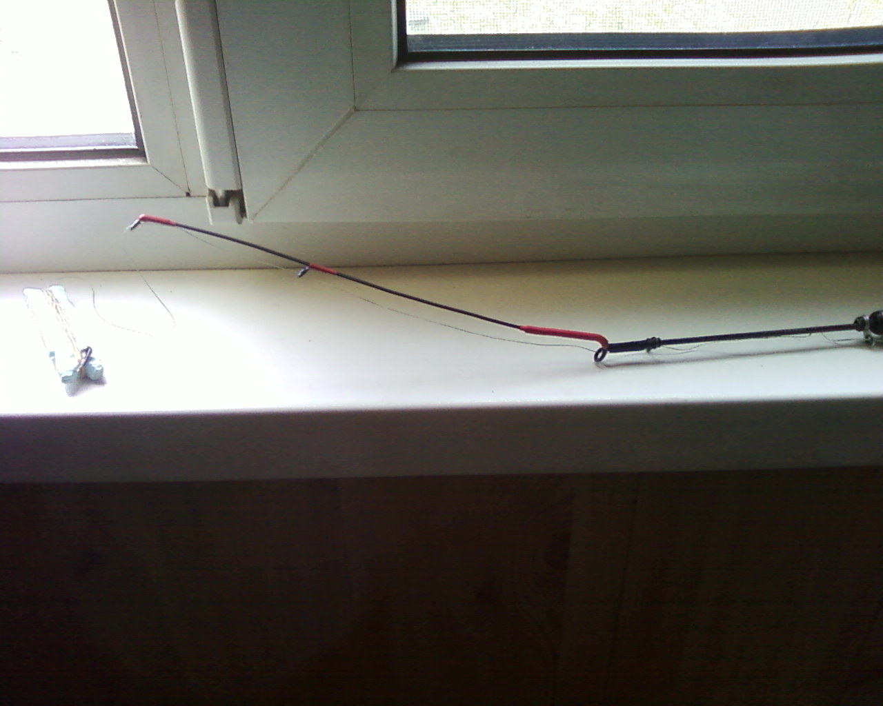 Фото064.jpg Первая рыбалка прояснила многие вопросы. А именно, такая 5 метровая удочка совершенно не годится для ловли на боковой кивок. Длинна нужна хотя бы 6 метров, но лучше 7 с длинной колена 1-1,5м. Кивок нужно изготавливать специально.