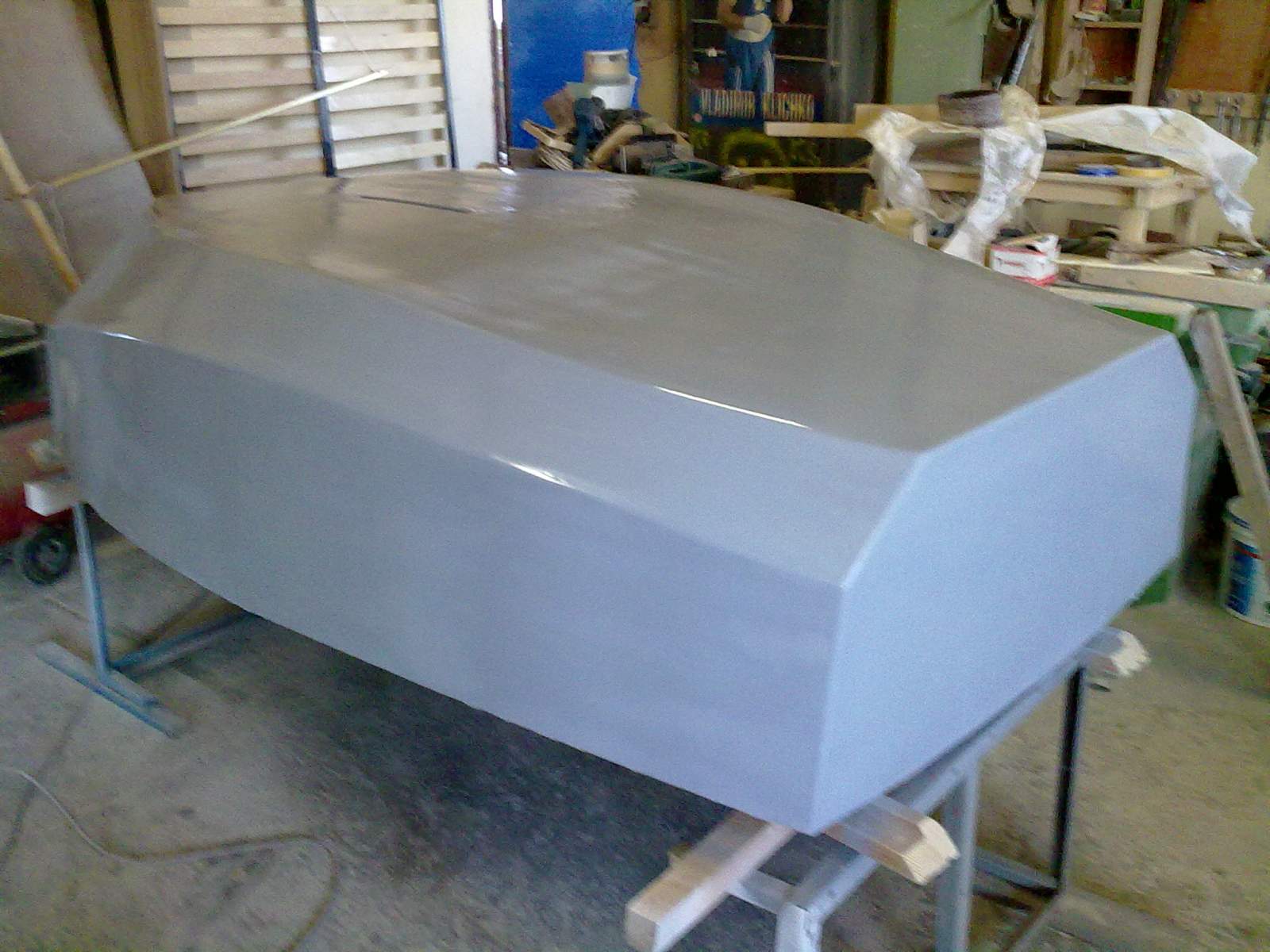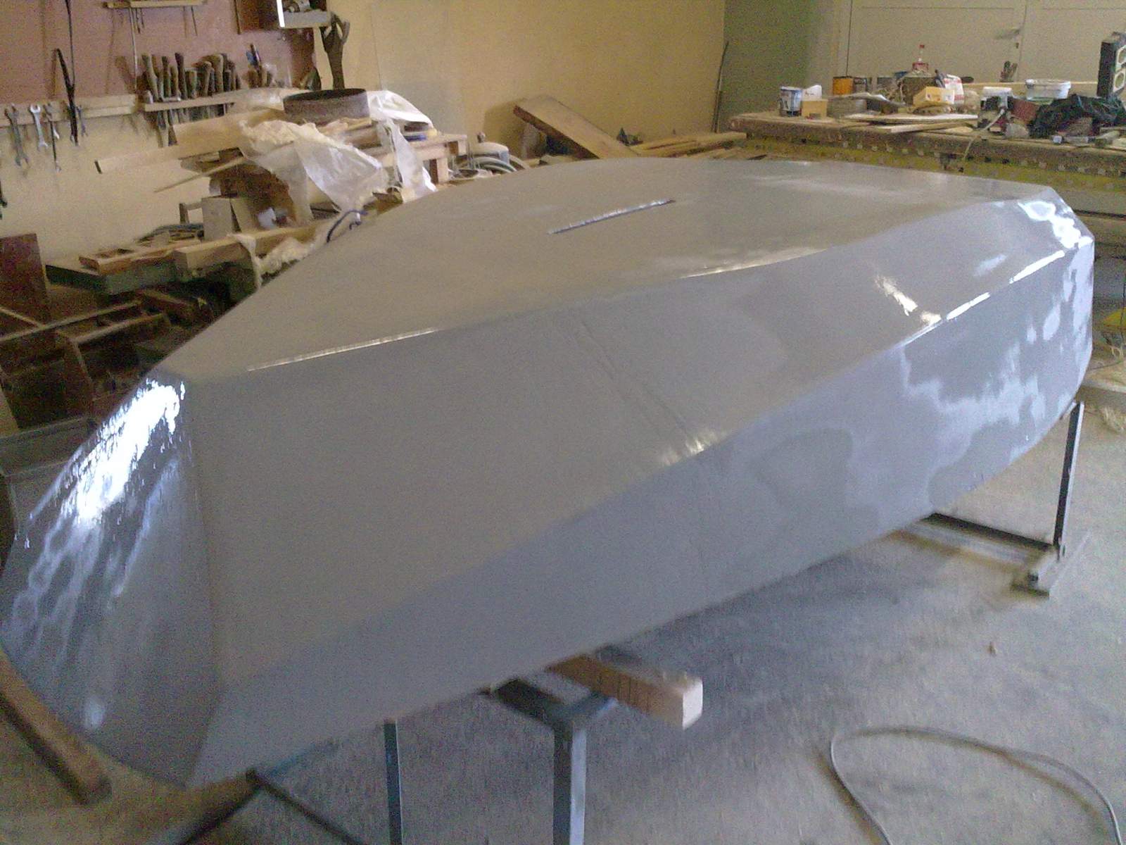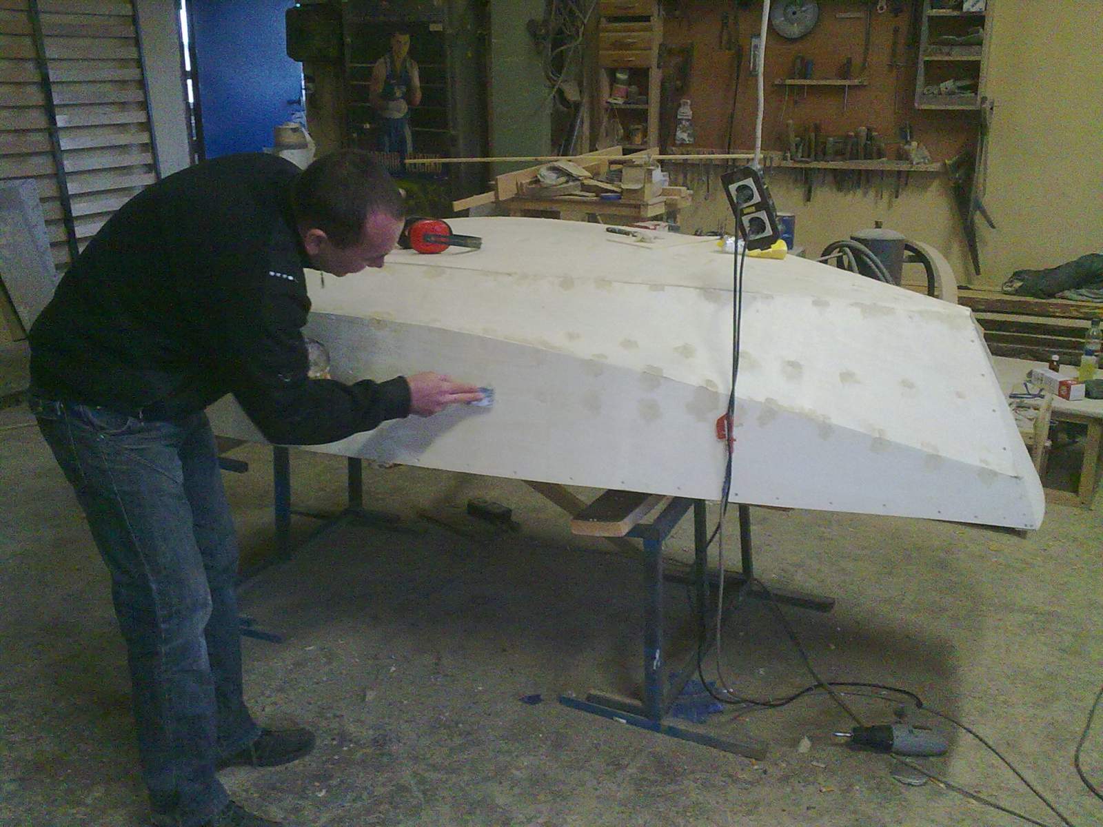 Вот так выглядит моя лодка на данный момент. Еще предстоит повторное шпаклевание и установка киля.