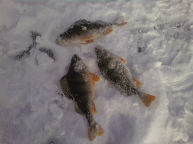 25ого вирiшив пiти на парошку у розвiдку на наявнiсть щуки та окуня на льду було усьог 6 рибакiв один на жерлицi iншi шукали окуня та йорша мормихами поцiкавився успiхами на жерлицi нуль у iнших 2-3 йоршика я вирiшив налякати когось блешнями)) i в першiй же лунцi удар i окунь на грам 300 э ого! для парошки дуже хороший результат потiм впiймав ще двох i все. завтра спробуэм на жерлицi а вось пощастить)