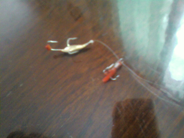 Снасть представляет из-себя обычный живодер. На палке длиной 1.5 - 2 метра (обычно колено от бамбуковой удочки или старой стеклопластиковой) катушка инерционная, леска или капрон, на конце два самодельных (из стальной проволоки) двойника и груз (около 50 - 70 гр).