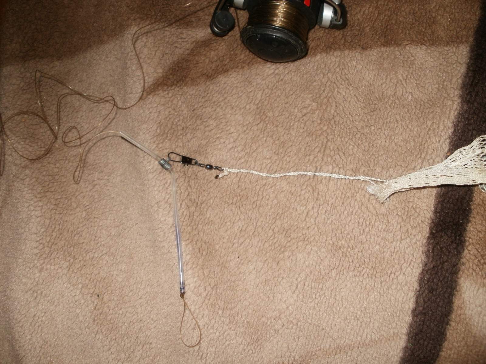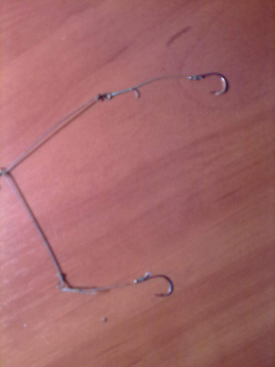 Я вместо лески использую спининговые поводки-две бусинки,меняю карабин на более мелкий,крючки с поводками разной длины.Оснащаю одним крючком или ставлю коромысло.в итоге-очень быстрый монтаж,быстрая смена крючков,хорошая чуствительность.]