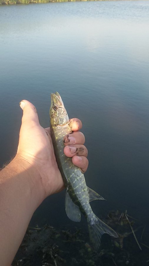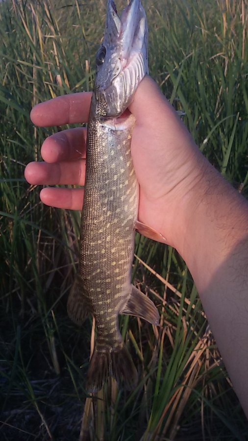 Примерно в 7.30 на мансовский крупный силикон садится щучка 1 кг (980 гр) , благополучно оказывается в лодке (ловлю без подсака) , далее на протяжении 2х часов попались ещё 2 ладошечных окушка на цыкаду и щучка 300 гр , окуней и щучку отпустил , так как принципиально не беру щуку меньше 600 гр . Товарищ взял 2 штуки в суме 1,4кг . У остальных людей либо фиг , либо 1 до полукила .