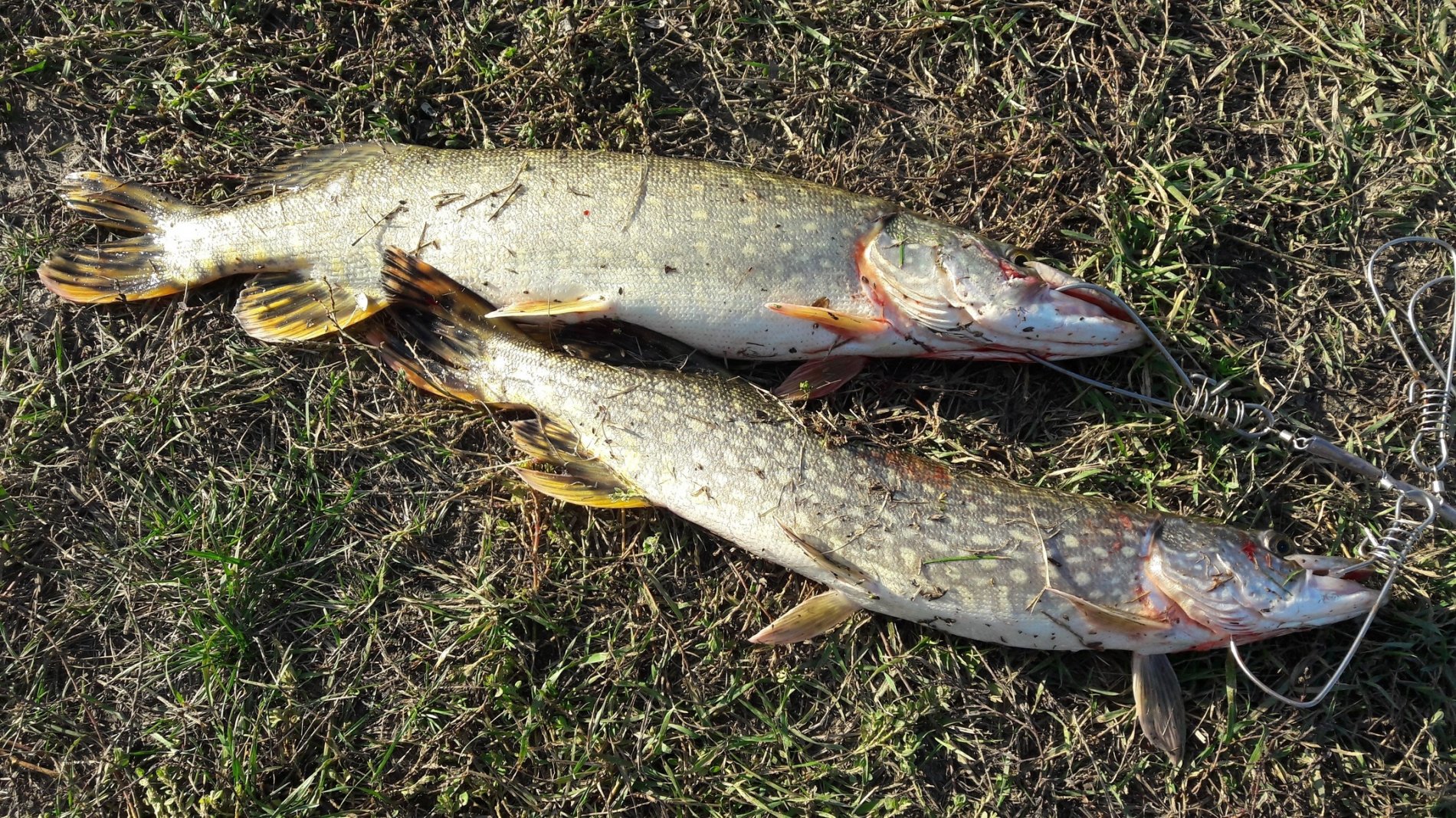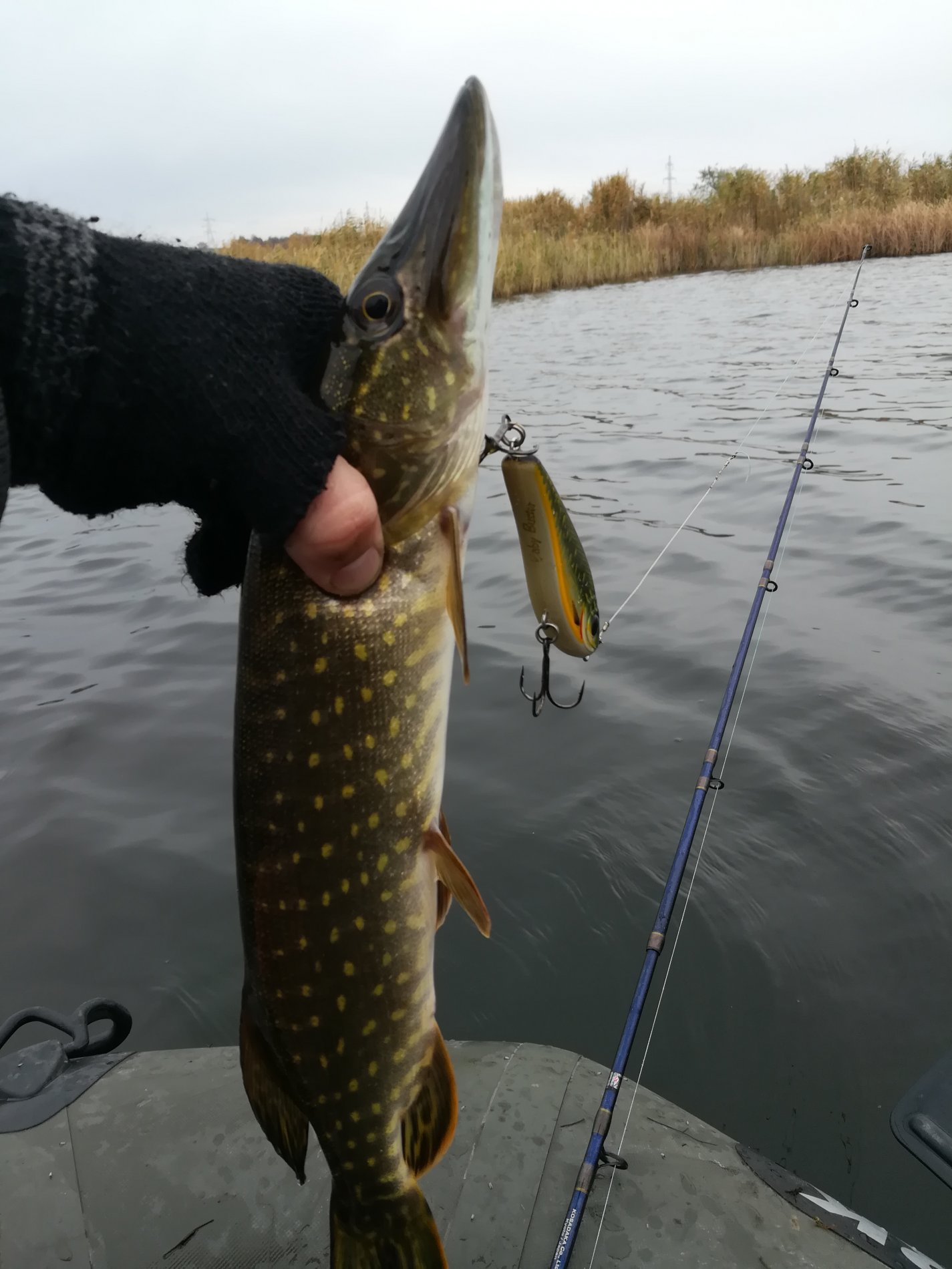 На обратном пути заехали на старое русло, где батя взял хорошую щуку под 3ху.