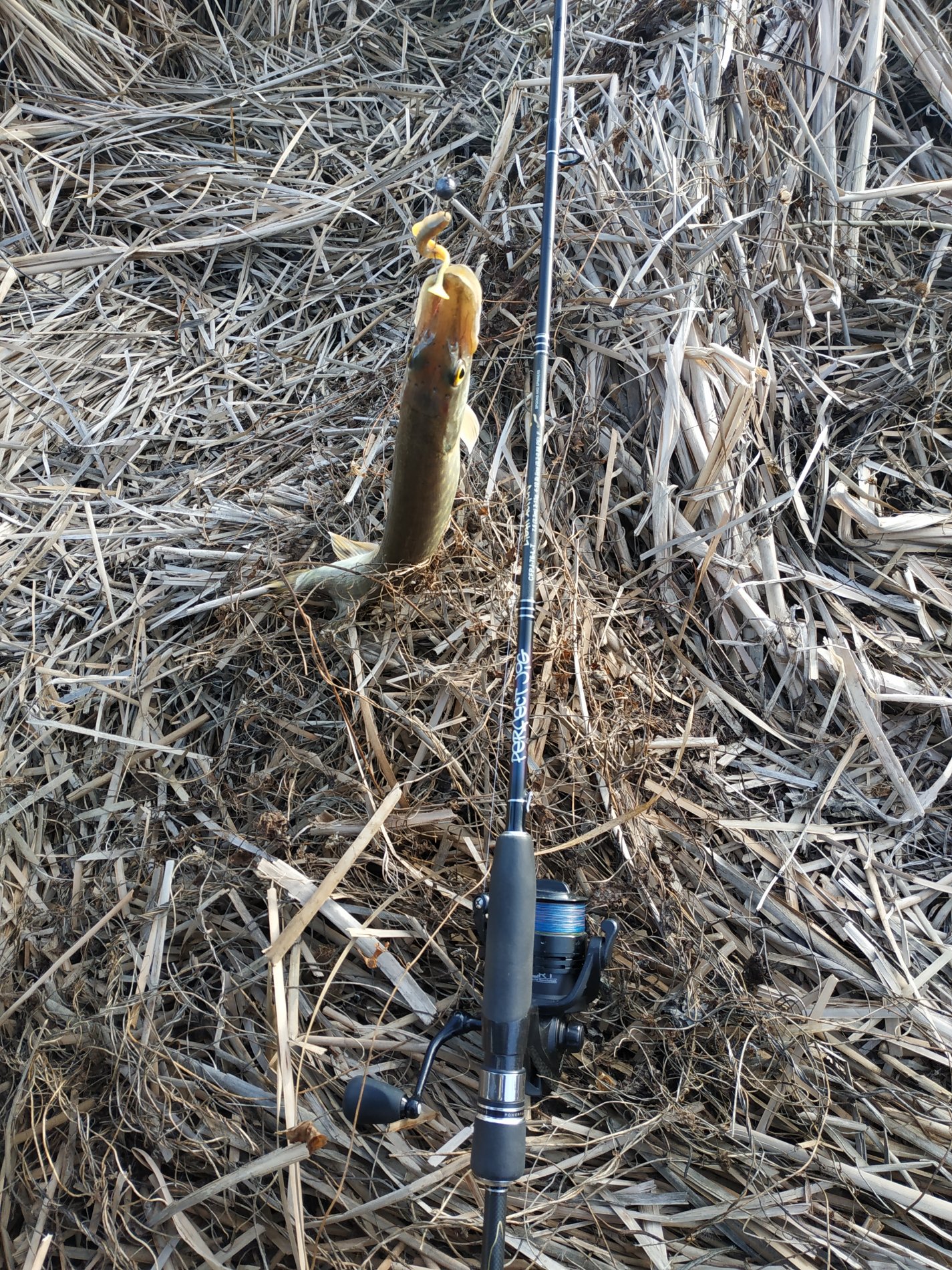 Привет всем , вчера по утру рыбачил на шахтах , взял 5 , домой взял 1 на 1,2 кг , 3 схода - 2 крупной , погода хорошая , рыбка вся в пьявках в траве/ камыше , ловил на зелёный силикон среднего размера в приповерхностных слоях воды на средней, быстрой проводке .