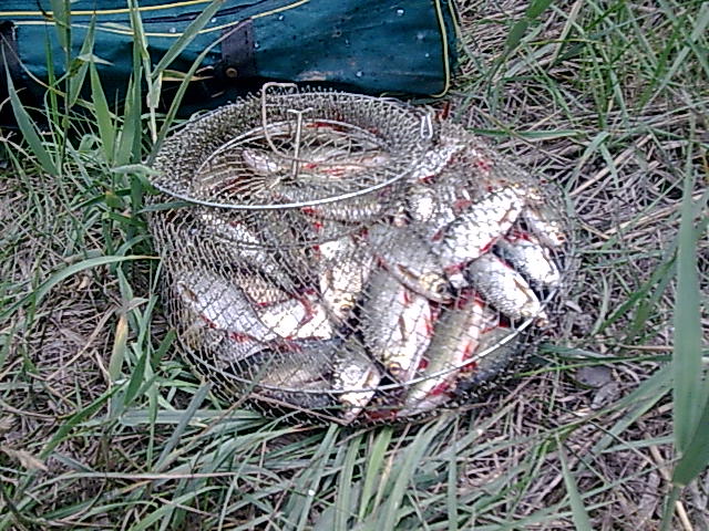 Снасть: поплавочная, пружины. Наживка: червь, перловка, горох, кукуруза консервированная. Прикармливал вечером и во время рыбалки, но клева все равно почти не было. У всех с кем разговаривал такая же ситуация, в т.ч. на Нагульном и в районе Вербок. Где-то недалеко от меня мужик выловил одного линька с полкило и больше ничего (ему хоть не так обидно). В улове одна плотвичка и одна себелина.