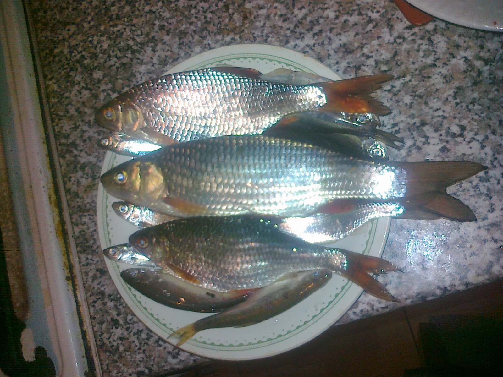 Ну вот снова пролетели очередные выходные,..оскому весенней рыбалки удовлетворил сполна,.вчера с утреца ездили с кумцом на Волчью в поиске "белой",..Прикормив уловистые места принялись за ловлю..Просидев с 08*00 до 12*00 - результат 2 литровый бедончик верховодки,..но это еще не все!!!! Тут пришел местный мужик и показал секрет...расчистив палкой окно в камыше, 1м от берега он страстно принялся за ловлю ВСЕГО!! и красноперка,и голавлик, и плотва,.причем без отказно...даже солнечный окунь шел по полной!!! Ну и скопировав действия мужика мы набомбили тоже рыбки!! Правда крючков оставили тоже не мало т.к. леска 0,08мм,.А еще слыхал от местных ,что на чистом между мостов ловят на пружину крупную плотву,.похоже ,что Днепровская!)