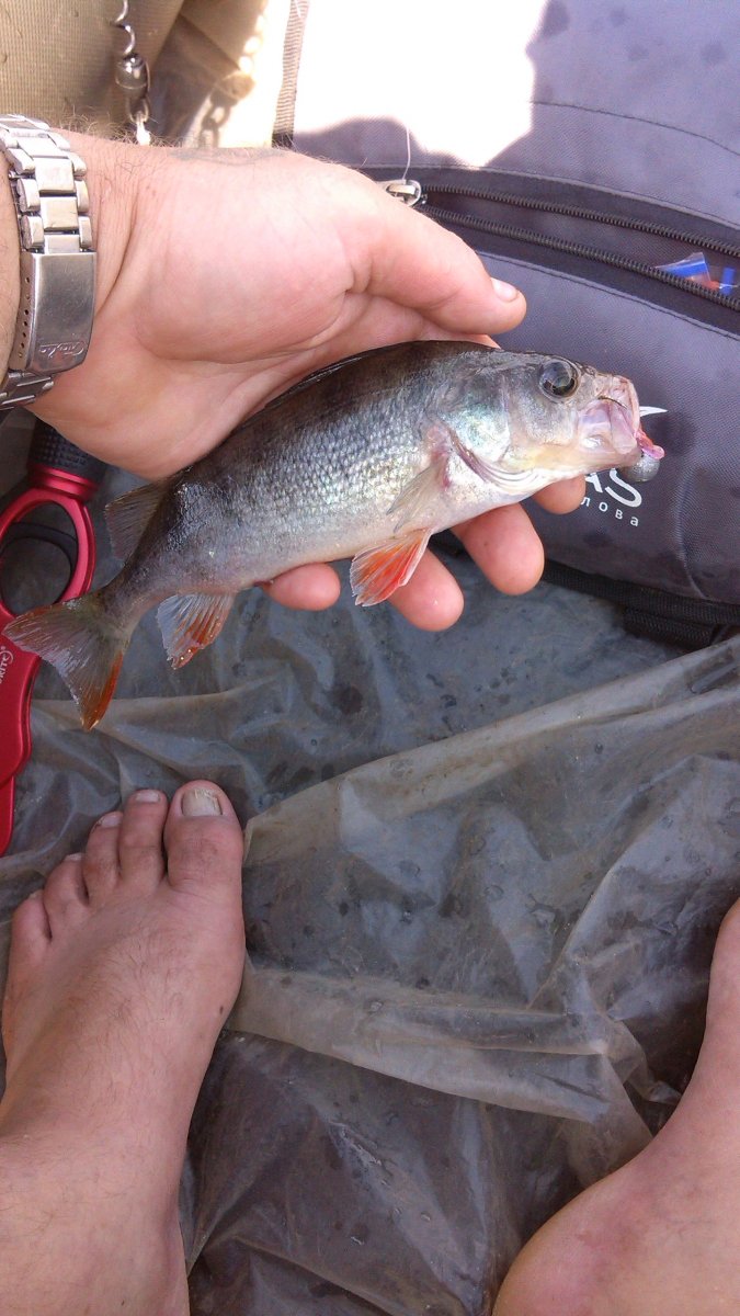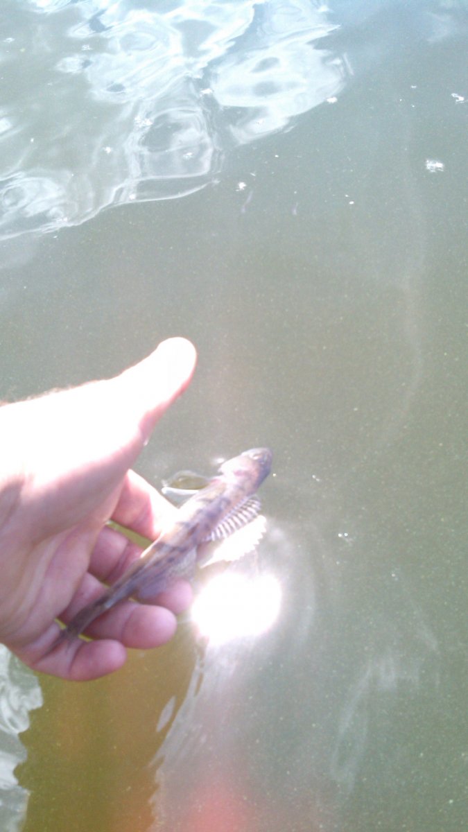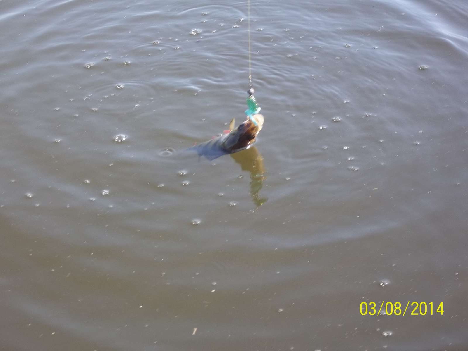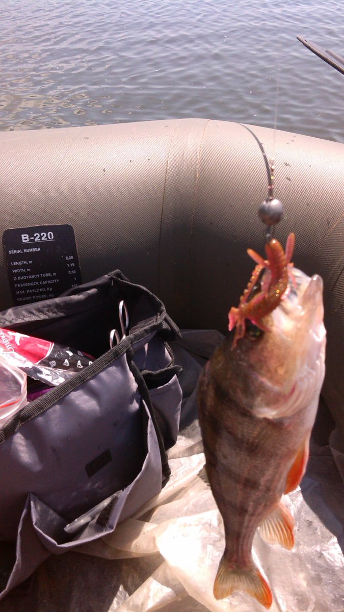К счастью, на верхнем Днепре, не в пример нижнему, не сплошные зимовальные ямы..., и есть места где запрета нет. Потому сегодня выезд на судака, джиг. В течении всего дня судак обозначал свое присутствие, но клевать, так что бы можно было засечь не хотел... Было правда несколько сходов на первых метрах вываживания. Зато с 10-12м ловился крупный бычок, на головки 12-13г с Фишхантером 2 красных цветов, попалась даже одна озверевшая плотва, при том не забагренная, а как положено в рот. По нескольку зачетных все таки поймали, на двух выходах за день по 15-20мин, во время начала толчка воды.