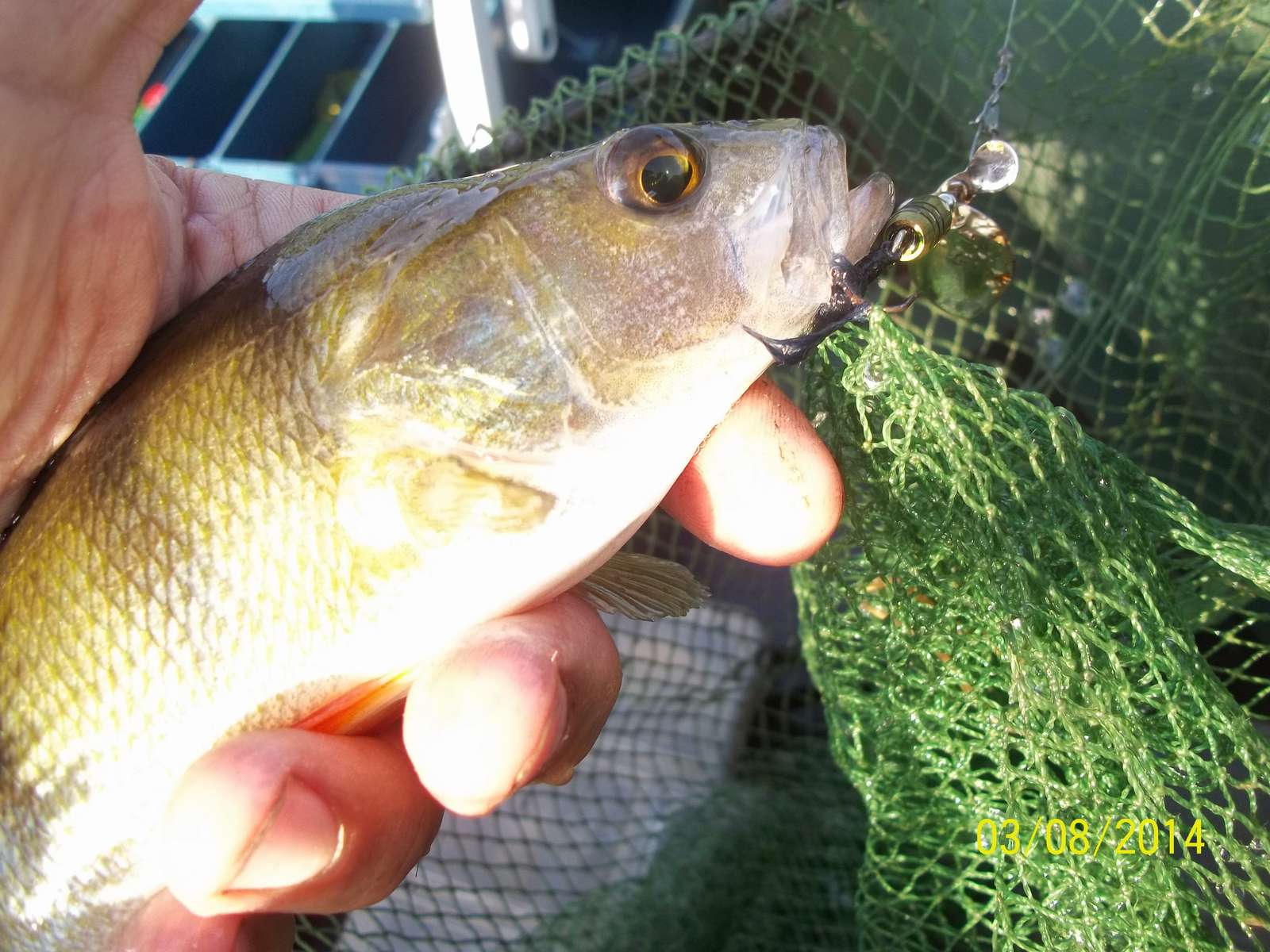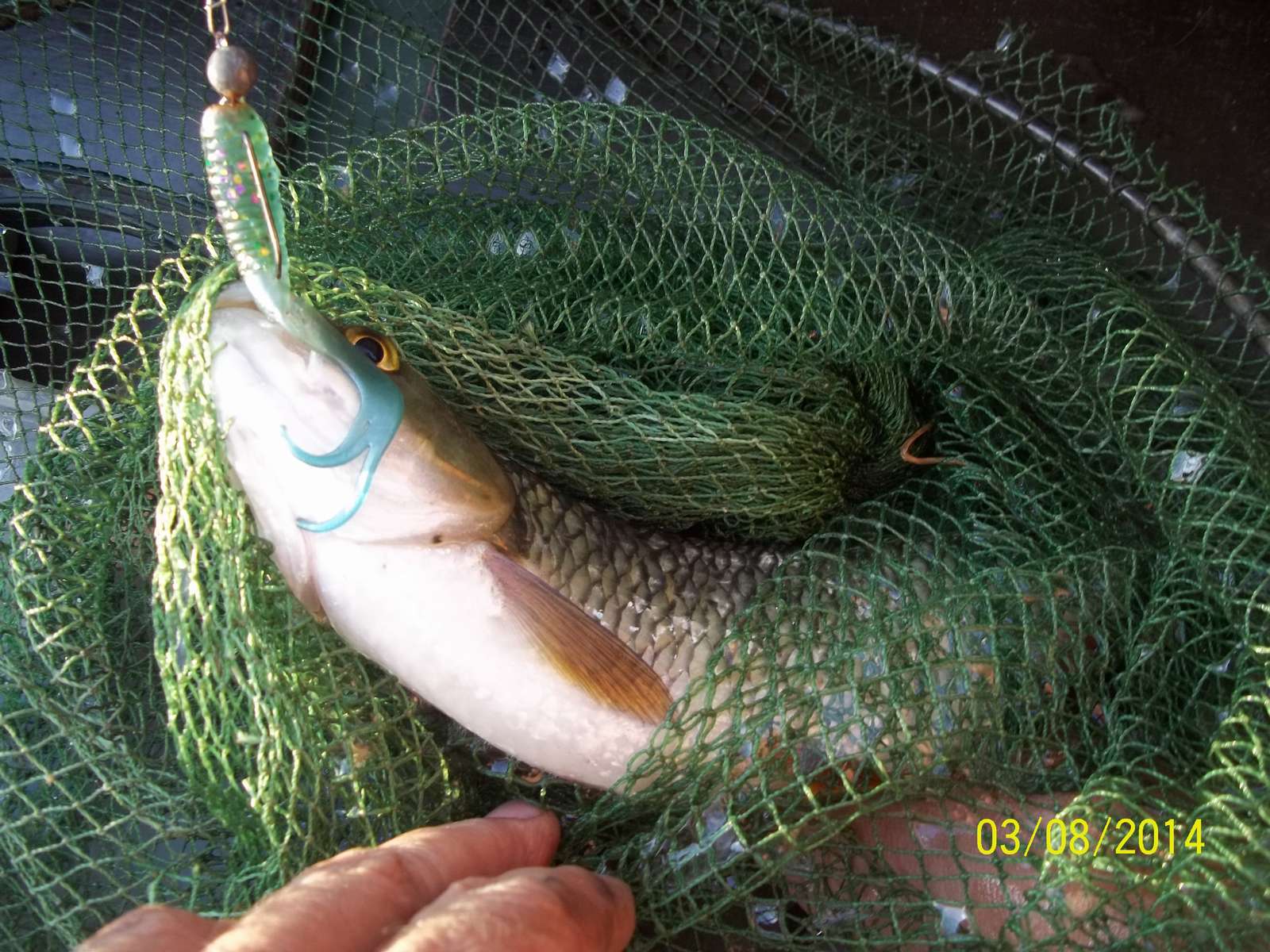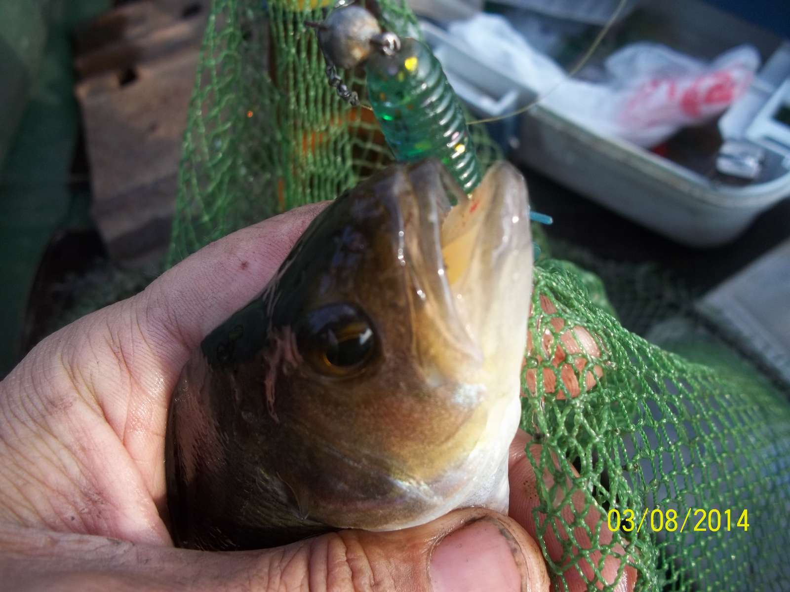 К счастью, на верхнем Днепре, не в пример нижнему, не сплошные зимовальные ямы..., и есть места где запрета нет. Потому сегодня выезд на судака, джиг. В течении всего дня судак обозначал свое присутствие, но клевать, так что бы можно было засечь не хотел... Было правда несколько сходов на первых метрах вываживания. Зато с 10-12м ловился крупный бычок, на головки 12-13г с Фишхантером 2 красных цветов, попалась даже одна озверевшая плотва, при том не забагренная, а как положено в рот. По нескольку зачетных все таки поймали, на двух выходах за день по 15-20мин, во время начала толчка воды.