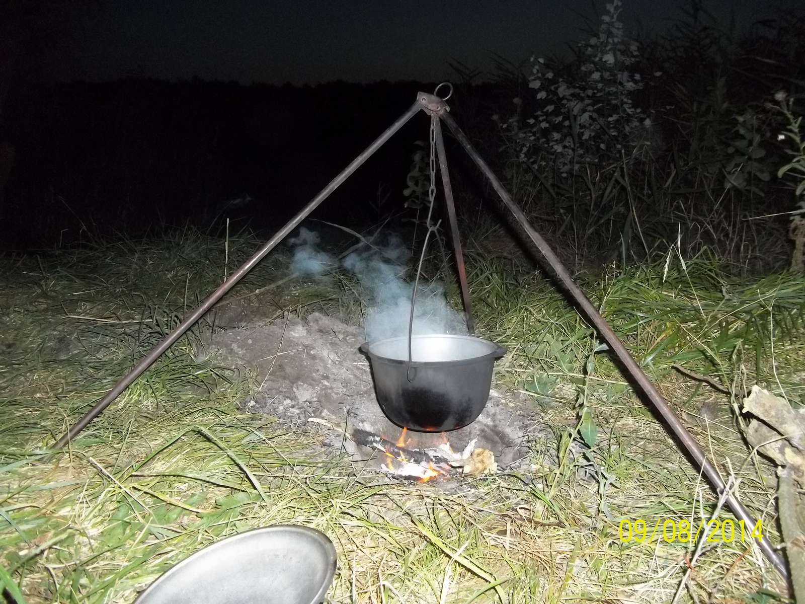 Как только 2 куба топлива было готово, дело пошло споро. Хорошо иметь в запасе регулируемую по высоте треногу! Хоть чайничек на нее вешай, хоть казан двадцатилитровый.