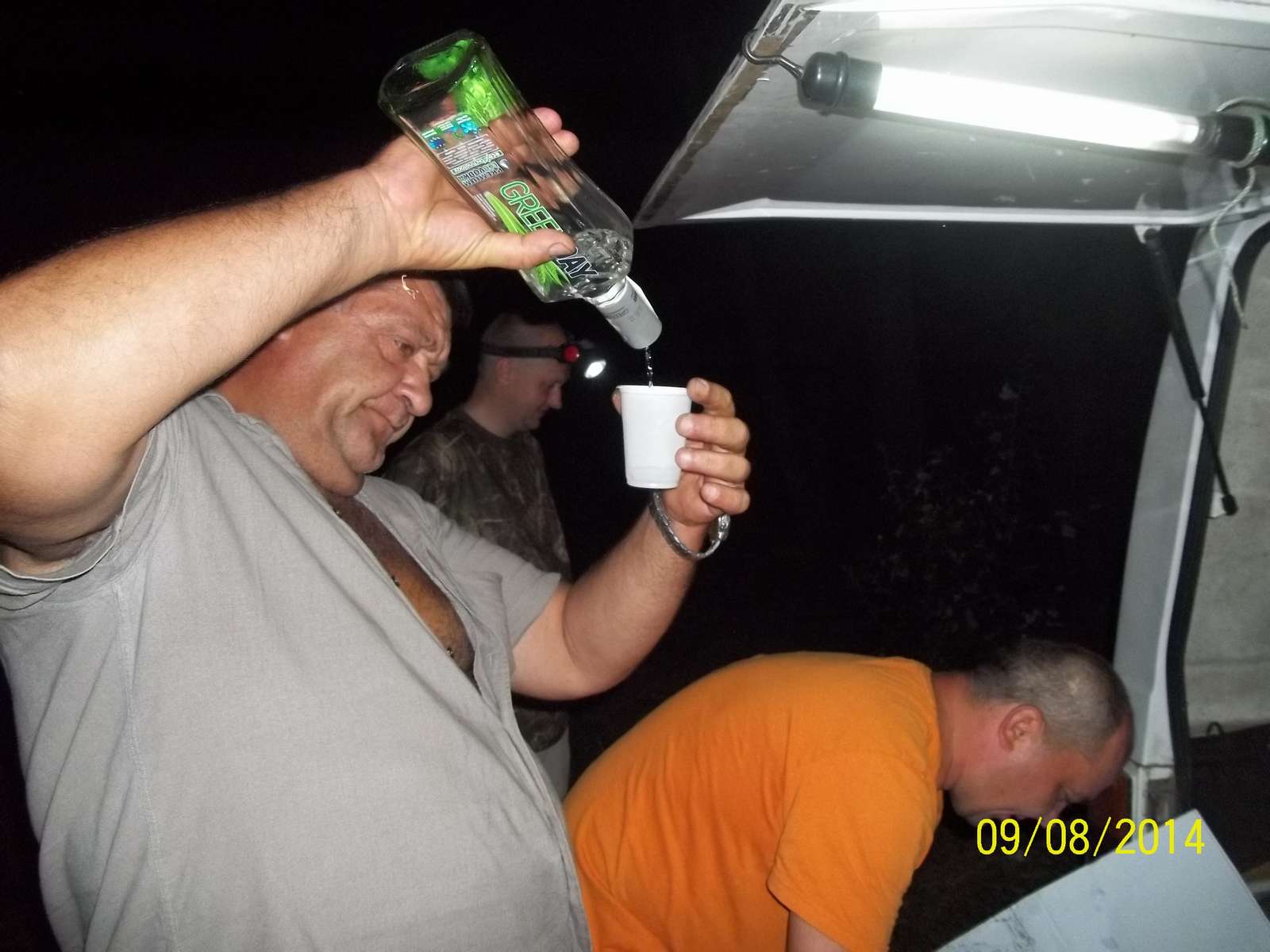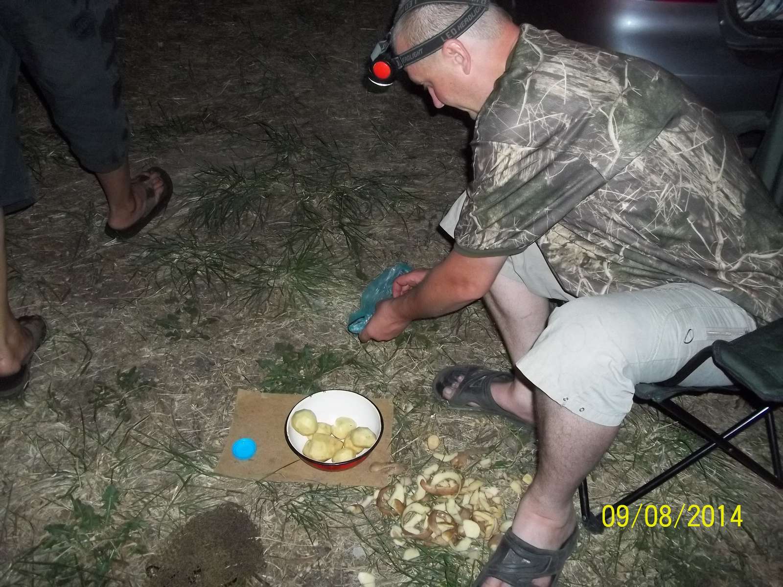 Пока закипала водичка, мы с Толиком подготовили небольшую поляну. Ну и пропустили по пять капель за встречу с камрадами.
