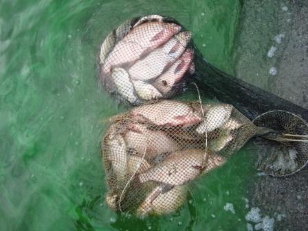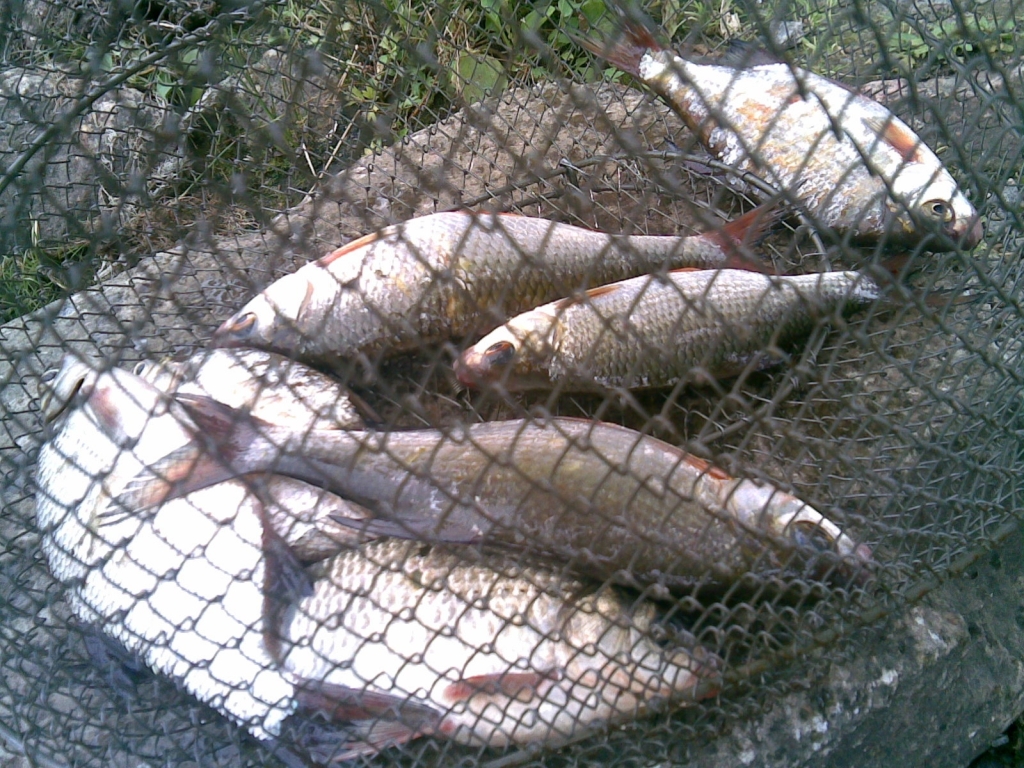в общем стал на место в 6,30, через 15 минут пошли карасики и таранка, клев неактивный, но одну таранку так же вытянул покусаную и с половинкой хвоста. из-за того что времени на рыбалку было не более 3 часов улов в итоге не дотянул даже до 2 кг. когда после рыбалки причалил к пляжу, то у рыбаков в садках было совсем не густо.