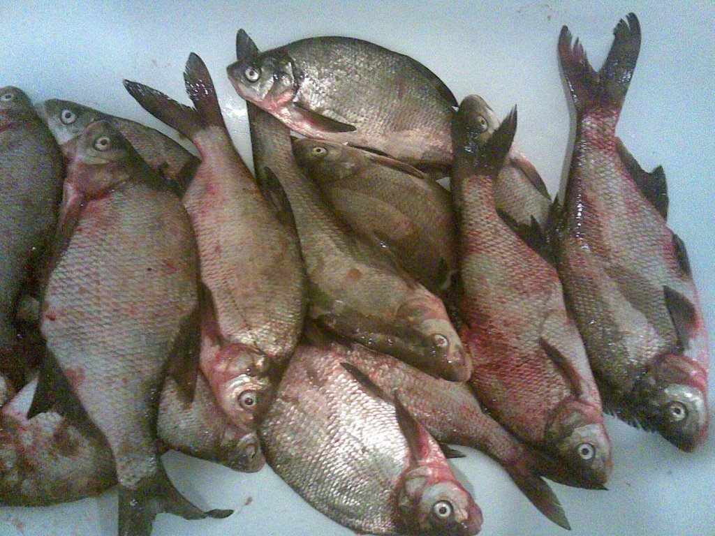 Был и я вчера вечером на берегу,тоесть на своем проверенном пляже.В 16,00 уже на месте,рыбачков насобиралось-прилично,каждому что то хочется,а конкректно-конечно же рыбку.Так вот,сделав корм с предпочительно большего процента добавки,это с той что спонсор нам предоставил на прошлых соревнованиях,свежий и пахнущий-закинув-жду.Первая поклевка и не очень подумавши и быстро подсекаю-зацеп?...нет,вырываю мелкую плотву из пасти какого то хыщника!!!Жаль,не проглотил моего живца.Клевала на опарыш мелкая плотвичка,не очень энергично,но тем не менее.Стемнело,пошла водичка с приливом вместе и началось...Подошел подлещик и начал потиху давать о себе знать.Клевал на опарышь в основном,красного вчера не особо и хотел.Попадались красавцы от 300 до 1 кг.даже два раза были "дуплеты",самое интересное при вываживании очень красиво сопротивлялся,такого неделю назад не замечал,приятное сопротивление в берегу было особо.В 23,00 спад воды полностью прошел и на этом все закончилось-улов на фото.Всем удачи!!!!