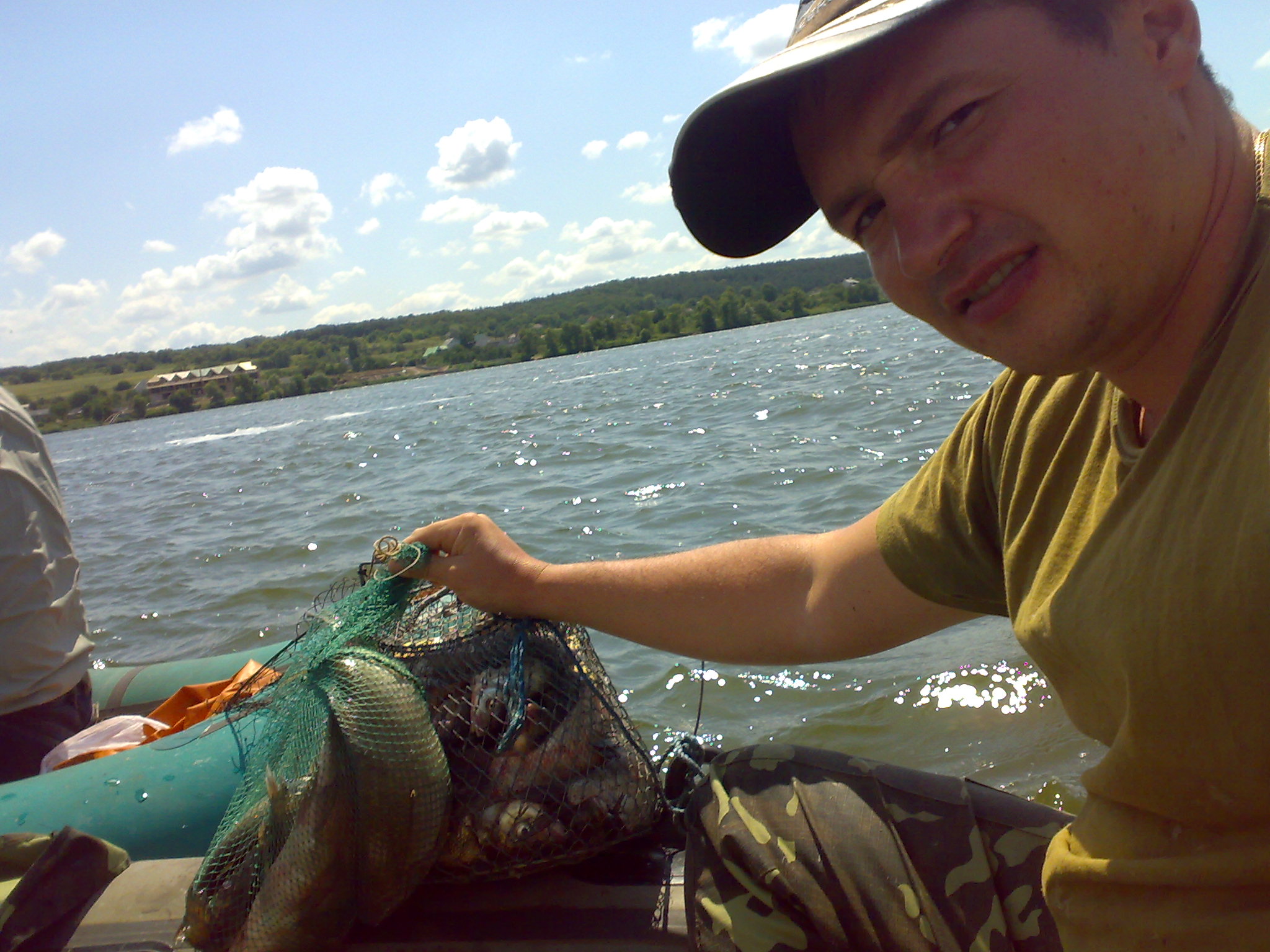 Вот и мы выбрались в очередной раз на леща постоять. На сей раз была выбрана Келеберда. Приехав в субботу часикам к 8 утра на берег - увидели, что ветер гуляет не слабый, но надежда на то что он утихнет все же была и накачав лодку выбрались на воду :rybak2:. Отъехав метров на 100-150 от берега решили закадолится чуть дальше от причала. Были удивлены - когда начали опускать кормак - глубина оказалась порядка 15 метров. вобщем снасти заброшены - течения нет, соответственно и мы загораем. К 11 утра начало надоедать, был совершен знакомому звонок (он сидел выше по течению в районе города), но у него тоже самое - рыбы 0. Вобщем течение начало проявляться уже после 13.00. Увидев, что народ на берегу оживился, а у нас все тоже бесклевье - решили перебраться к берегу поближе. короче говоря в районе 14-15.00 были уже на другом месте с глубиной порядка 6-7 метров. Вобщем буквально через 15 минут последовали поклевки, и первые сходы (леска 0,2 почему то совсем слабая какая-то стала после зимы). После 4 или 5 сходов (обрывов) леска была поменяна на 0,22 купленную неделю назад и первые лящевые пошли в садки. Короче продлилось это примерно 2 часа, и к 17.00 как-то поутихло, собрались и поехали на берег. Отец сидел с берега - рыбачил на резинку - у него 1 лящ, 1 козел, 3 густеры, несколько таранек и карасик. У нас 7 штук (фото своей чати выкладываю).