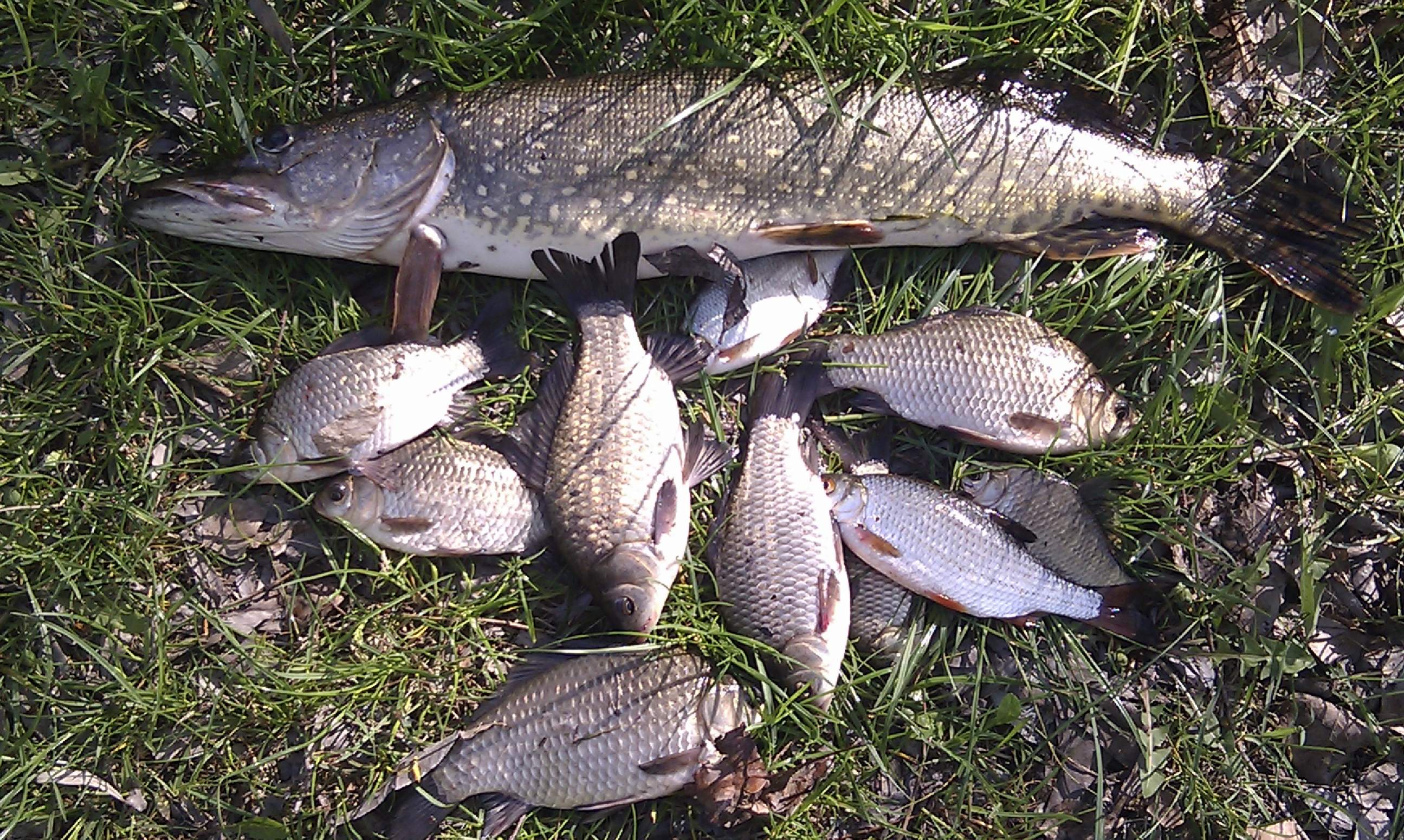 За утро удалось выловить на пару сковородок карасиков, и щучку, последняя позарилась или на пучек червей или на малька крутящегося рядом.