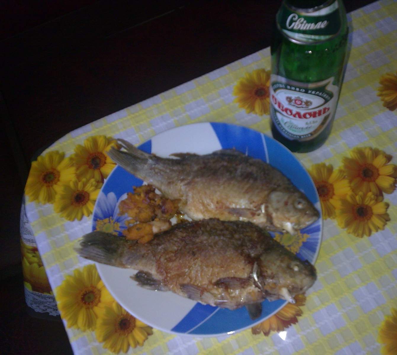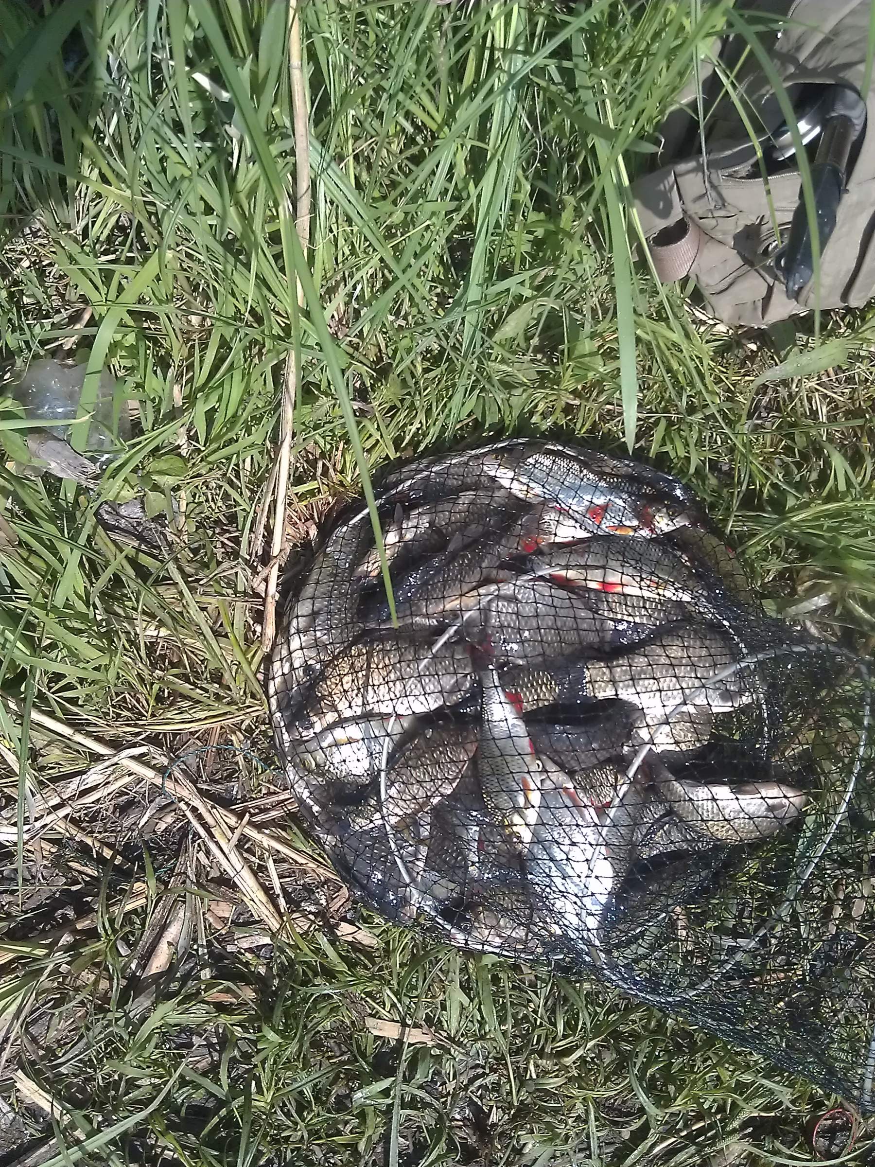 Небольшой отчетец за рыбалку 10 мая. Решил проверить один из заливов Днепра на наличие там хищника, ну а на случай если таковой брать ассортимент моих приманок откажется, взял с собой удочку и остатки красного червя и опарыша (прикормку не делал, т.к. основная цель была проверить залив на наличие хищника). В 5 утра я уже был на берегу ...Скажу сразу, что хищник в заливе присутствовал, но особую активность проявлять не захотел. Кое-где окушок ганял мелочь и пару раз зубатая показывала КТО в заливе хозяйка... В итоге я выманил = вымучил на микроджиг с твистерочком (потому как ни воблерки ни поппер результатов не дали) пару окушков, размером меньше ладошки, тут же отправив их в родную стихию подрастать, решил хоть на жареху наловить мирной рыбы. Время было уже почти 7 часов... Начал с красного червя - результат НОЛЬ :(, хотя явно видел, что белая рыба не просто присутствует, а прям таки скачет через поплавок... Заряжаю ей пару опарышей и сразу на крючке ладошечная красноперка, которая радовала меня своим клевом с пол часика, за которые я успел ее выудить с полтора десятка, причем парочку удалось выхватить и более приличных размеров. Но как только на белого выудил карасика - это был знак, хватит баловаться, время переходить на его излюбленного красного червя. Цепляю красного и уже карась регулярно совершает подходы к наживке :poplavok: Так постепенно я натягал мерных карасиков (все размером "за ладонь") и когда солнышко уже начало припекать, решил двигать домой. Мои выводы по итогу рыбалки : хищник имеется, но либо не хочет брать искусственную приманку по причине того, что ему достаточно и малька, либо еще не наступил его так называемый жор, когда он хватает всё, что шевелится... А если ставить цель мирная рыба, то при соответствующей ЦЕЛЕНАПРАВЛЕНЕНОЙ подготовке именно к рыбалке такого вида, мирной рыбы наловить не проблема.