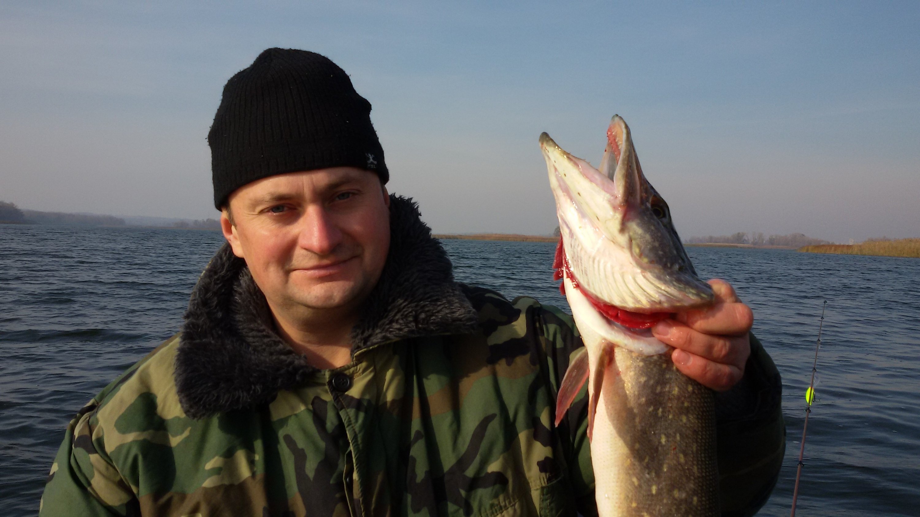 В общем подвожу жереха к лодке, вижу он сидит на меленьком крючке, который впился ему в нижнюю губу. Благо губы у жереха мясистые. А вот крючок слабоват)))