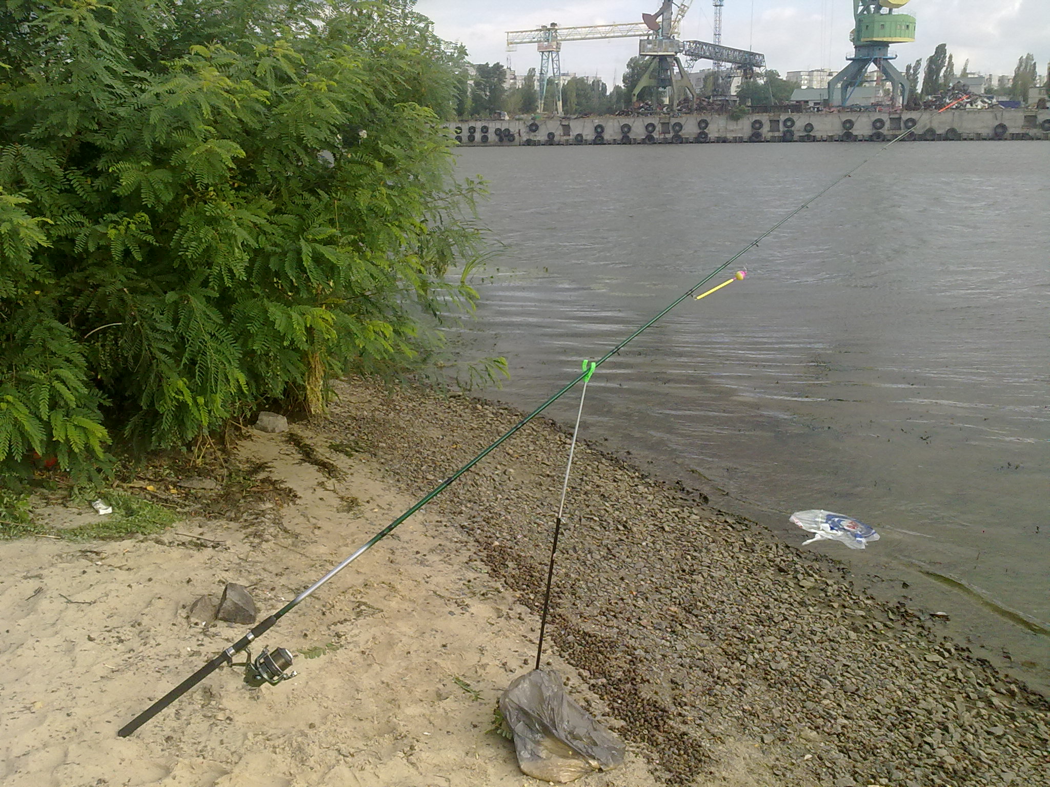 Отчитаюсь о сегодняшнем выходе на берег.Была скорее тренировка-разведка боем,а не рыбалка.Побывал сегодня в грузовом порту в конце дамбы(на выходе),понесло меня туда т.к нужно было место без течения и чтобы бросить подальше.Прикупил на днях новую катуху для фидера + шнур + фидерную леску и решил поупрожняться на дальность заброса,т.к. катушка покупалась именно для дального броска и мощного выматывания обратно на берег.Пришел,разложился,побросал немного разные веса и на леске и на шнуре.И тут вовремя очередного заброса,с Днепра в залив влетает моторка,я как раз выматываю шнур(на другом конце пружинка 30г ) я думал что ничего страшного лодка в 50ти метрах от берега,ан нет зацепил пи....с.И 40 метров Power pro (муха не сидела) намотало на винт.Погоревал немного,но от рыбалки не отказался поймал с десяток карасиков(как он мне уже надоел этот карась :) )убрался восвояси.НЕмного местных пейзажей: