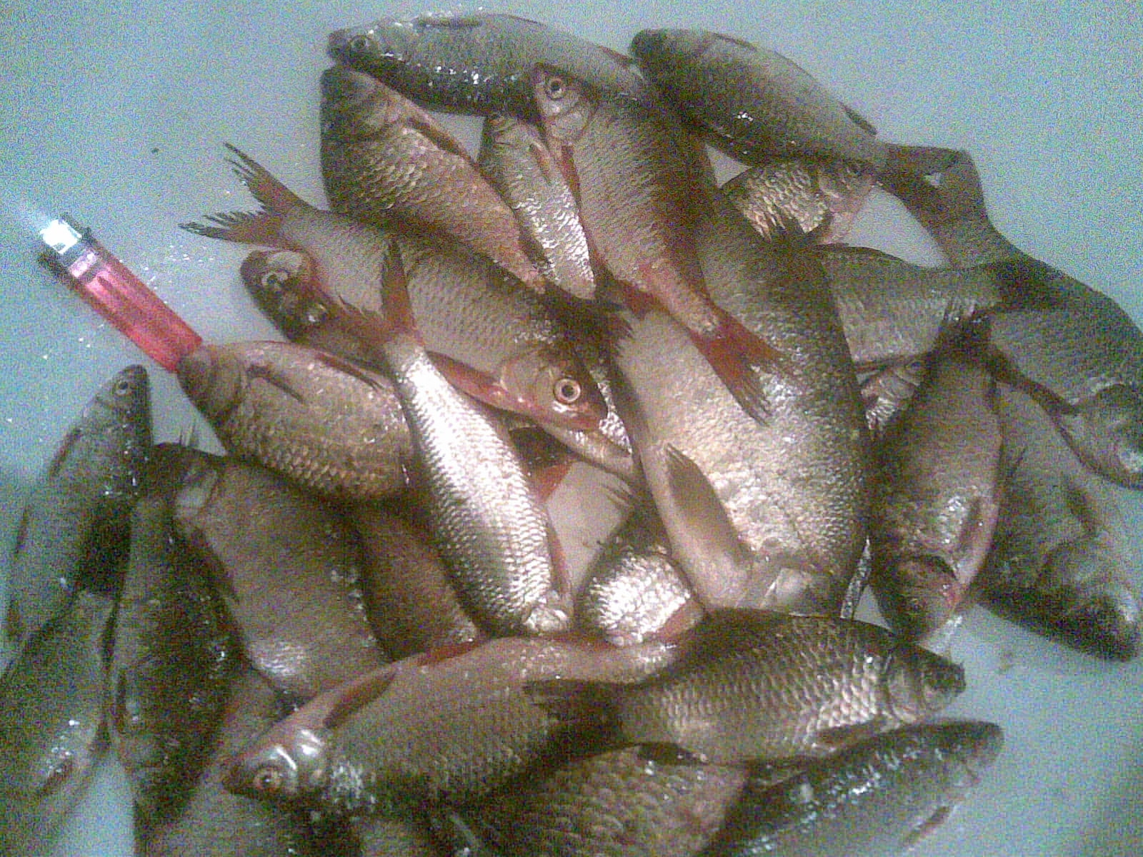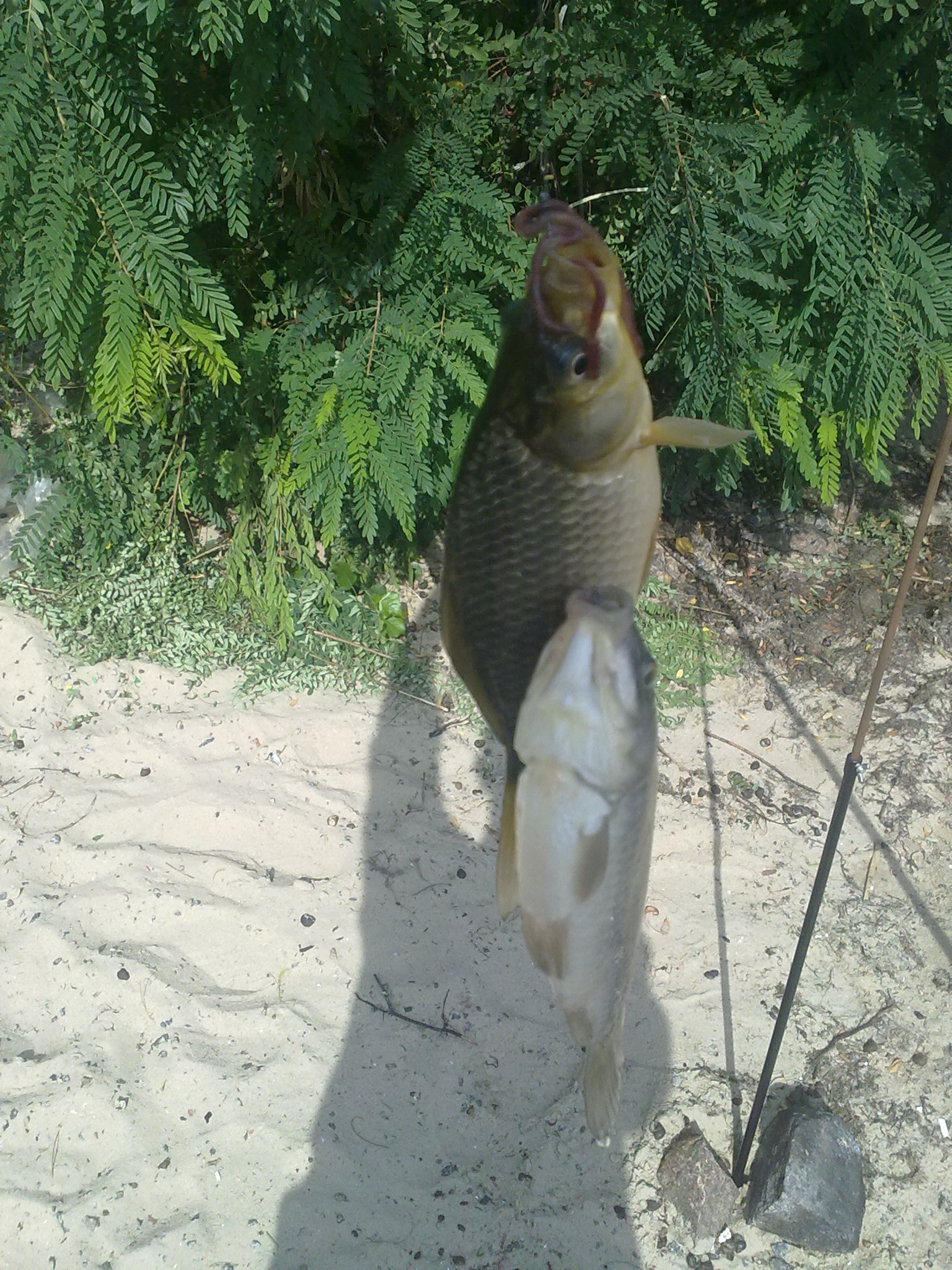 Всех с наступающим праздником!!!Теперь о рыбалке,в 5 утра на предыдущем месте,забросы в два "ствола" и первые поклевки не дали долго ждать.Клевала плотва неплохих размеров,потом карась а чуть попозже и подлещик подошел.Выловлено два экземпляра по600-700грамчиков,что радует,подымается рыбка,оклемалась малость.На свое удивление был пойман коропчучек-красавчик гр.на 500-600!!!Очень красиво сопротивлялся,но был таки доставлен в садок.Из интересного было,при забросе взяла верховод,через 10 мин.удар судачины,и только два прореза от зубов осталлись на рыбехе.Клевало и на красный и на опарышь,корм тот же, в итоге 4,7кг.рыбки асорти+прекрасный свежий отдых,но до определенного времени.После 10 утра сегодня жарковато,но долго не сидел и в 11-30 был уже дома.