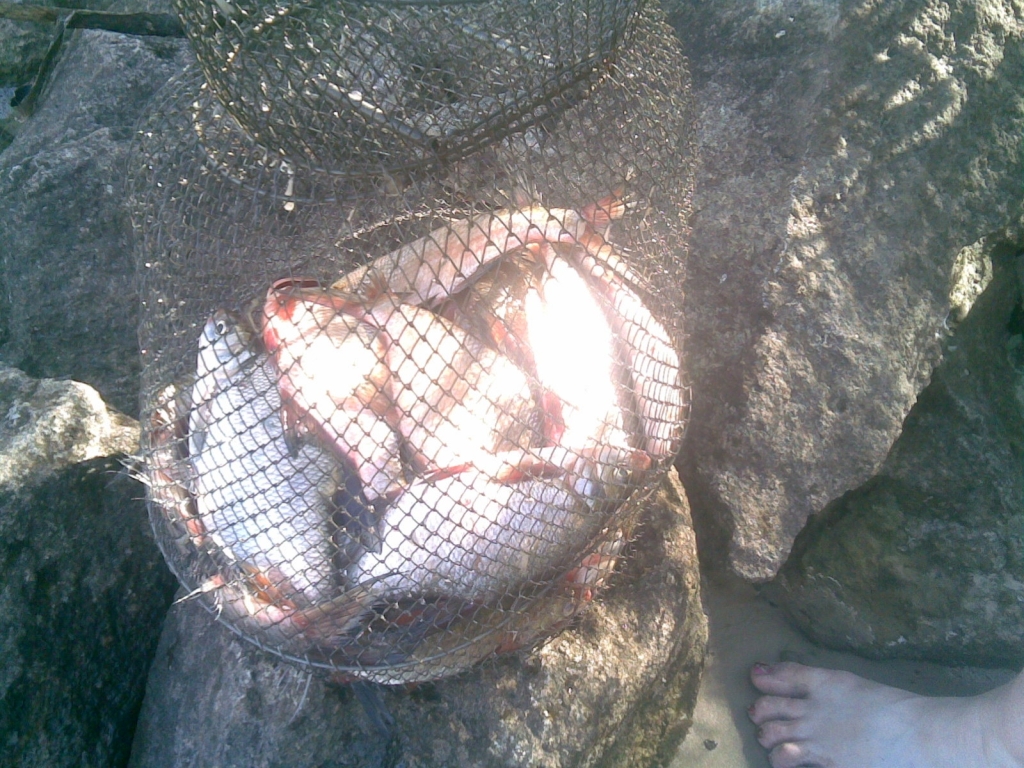 Был и я вчера на рыбалке, со своей второй половиной отправились утречком от городской метушни на остров"Зеленый".Хоть и погодка прогноз дала не очень.Вообщем совмещали как и отдых так и рыбалку.Теперь о хвостато-перьевых,с утра не активно особо,зато часам к 10 пошло потиху,как всегда подлещики до 600гр.,карасик мерный,несколько плотвиц.Чтобы особо не бегать,ведь не только на рыбалку приехали,один спин был смотан и попутно готовил шашлычек.Да...хотелось бы сказать поповоду мусора на берегу,ну конечно же св...ивсе бросается не вывозится и не закапывается.Набит полный мешок бутылок,пустых из под водки и как на показуху оставлен на видном месте!!!Судя по своему мусору что остался,не очень тяжело вывозится...Так вот поймано 3,5 кг.всякой рыбки,да,пойман коропчук гр. на 350!!!Ну очень красиво шел...