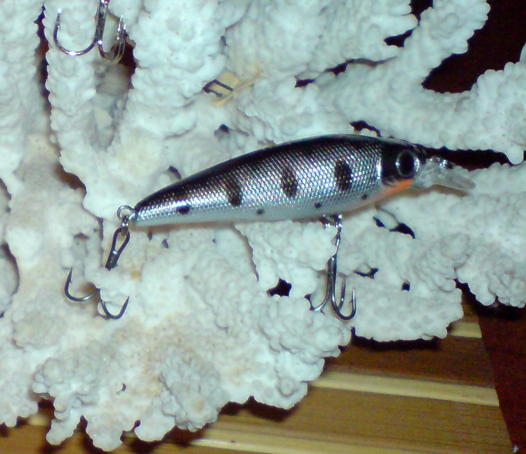 Сегодня воскресенье, в 8,40 уже на воде, пошел вниз в речище проверить понравившуюся яму. Сегодня отличился только один Буратино от Гамакатсу (см. фото), сперва на тролле зацепился за тройники карася джексоновского (5см плавающий), который был в тандеме с джигом сидящим мертво на коряге, выдрав корягу из ила - трофеи перекочевали в коробку. Потом на одной точке взял хорошего окуня и подряд три подростка щучьих, которые были отпущены к маме. Первого щупака не фотал, забыл. На той же точке буратинка погиб смертью храбрых, в бою так сказать. Бланк спина расчленился при забросе и воб ударившись о мотор, отбросил лопату как ящирица хвост. Хорошо хоть бланк не пострадал. Дальнейшие упирания в различные приманки, в том числе и трофейные, результата не принесли. Окунь тоже, потомившись на кукане до конца рыбалки, был отпущен. Ушел бодро, зачем он мне один. Так что сегодня рыбалка прошла под девизом «поймал - отпусти».