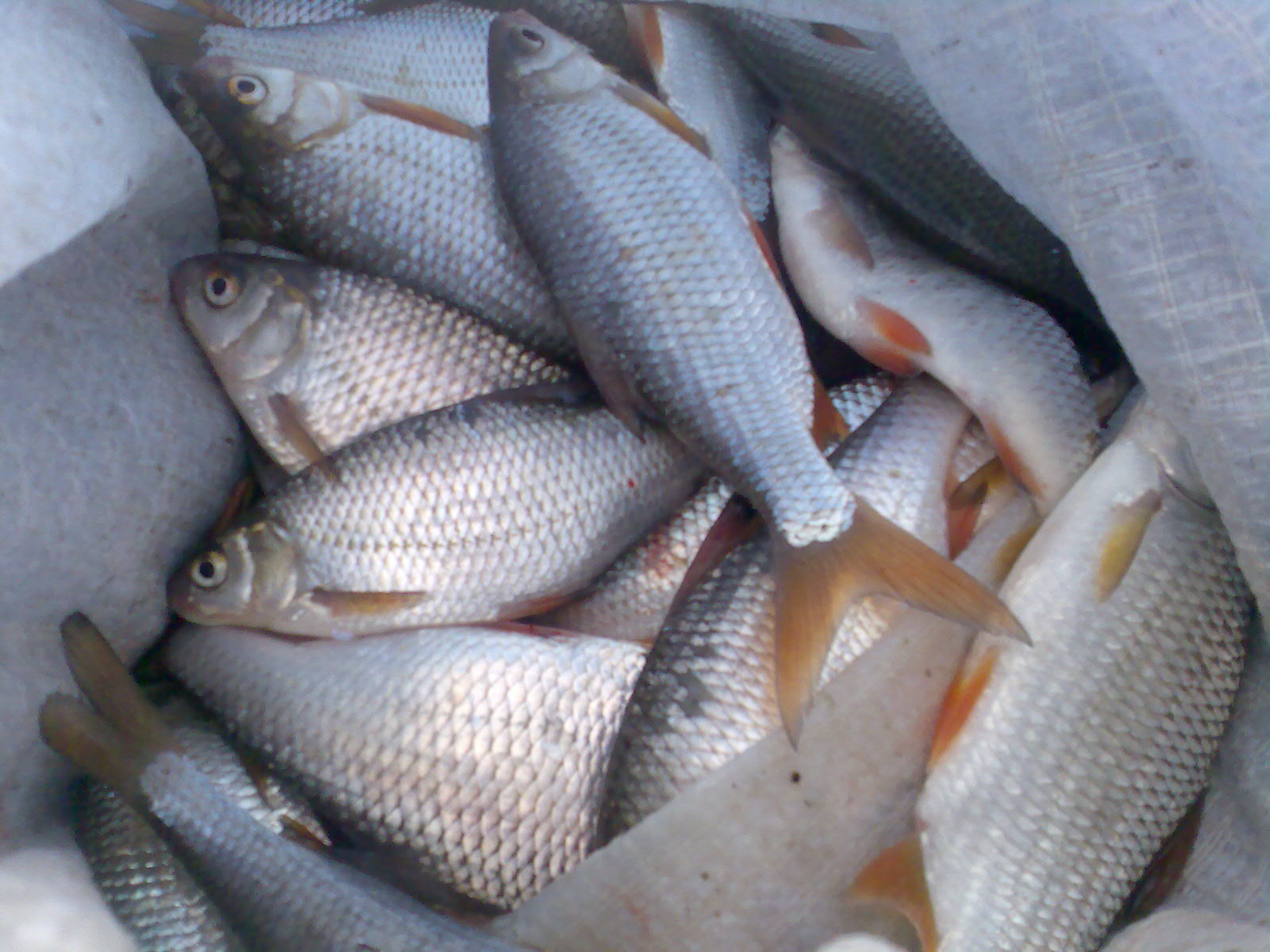 В субботу переночевав с мыслью, что щука не берет, покрутившись с утра около базы без успеха, около 12.00 дня поплыл к карьеру, всетаки с надеждой уговорить может судачка. По дороге к руслу, еще в плавнях , встретил Серегу (карасика) с его товарищем, они пытались ловить раков. Почему пытались?! Да потому-что вода настолько мутная еще, что на глубине 30-40см, дно почти не видно, раков очень мало еще и мелкие. Пожелав им удачи порулил дальше. На Русле народу тьма, кто джигует, кто на белую стоит. Воды нету. Значит судака тоже. Убедившись, что судак всетаки молчит как "партизан", поплавав кругами я нашел интересный сваличк и на глубине около 5м. стаю белой. Неуспел я опустить зимнюю удочку тут же начались поклевки. Что не могло не радывать. Стоял один рядом никого не было, никто не мешал. Сначала клевала не крупная, подкинув кашки, дело пошло еще веселей. Даже бывали дуплеты.