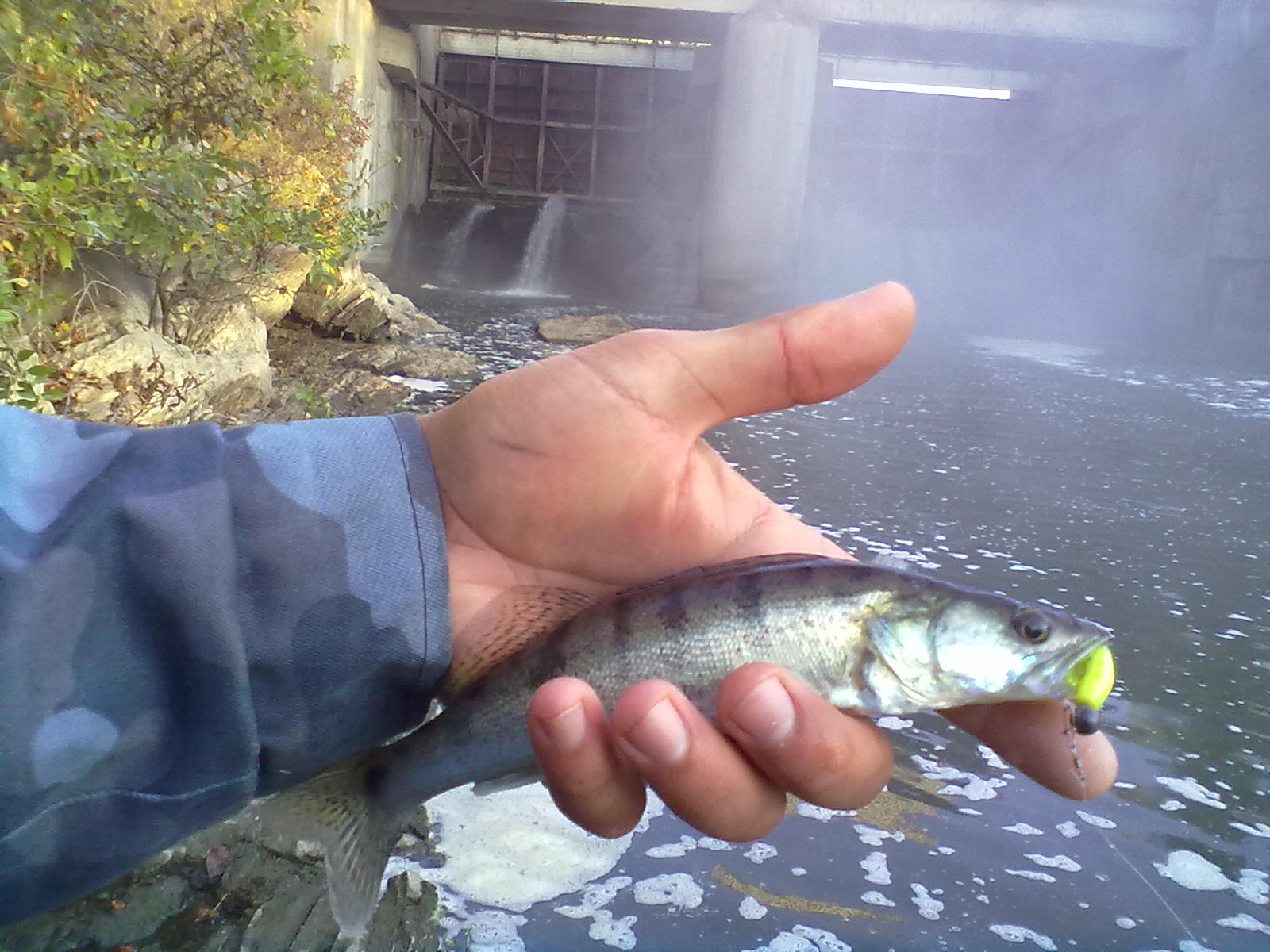 Решил махнуть на Войновку, сказано-сделано. На самом водохранилище порыбачить не удалось, походу сахзавод опять какое-то г..вно в воду сбросил, посколько свинец на "чебурашке" моментально покрывался черным налетом, а силикон коричневыми пятнами:злой: но все же пробил свои точки (для очистки совести), естественно безрезультатно :( было решено зайти на сброс... здесь с водой все ОК, ну и рыбка была довольно активна, сначала окунь и судачек проклевывал на мдж а потом перешел на воблеры(с ними хоть зацепы за камни на дне прекратились:D)