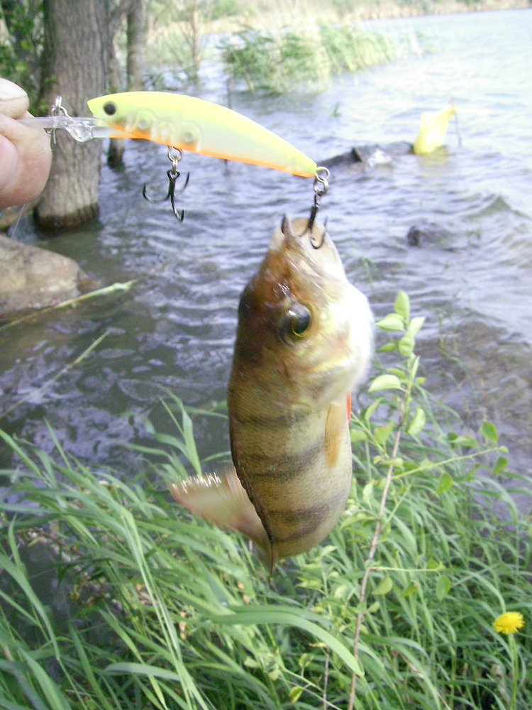 Клев довольно неплохой, но полосатый мелковат, также очень много красноперки, которая более жадно, по сравнению с окунем, атаковала блесну... Все же удалось уговорить парочку товарных окунишек:ura: и венцом рыбалки на озерце стал срез флюра щупакаброй:wo_kakaya: