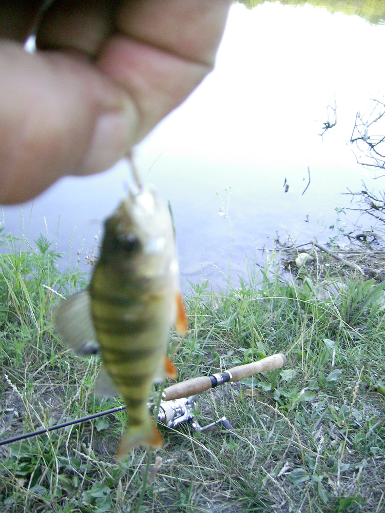 Поскольку еще время было решил на речку, где и встретил Сергея, который сказал, что клеваки закончились:( да, минут сорок не клевало, а потом немножко окунек начал шевелить:somyara: не стал долго жарится на, уже стоявшем высоко, солнышке:solnce2: убил одну силиконину (ловил сплит-шотом) и домой. Отдых удался!!!:ura: