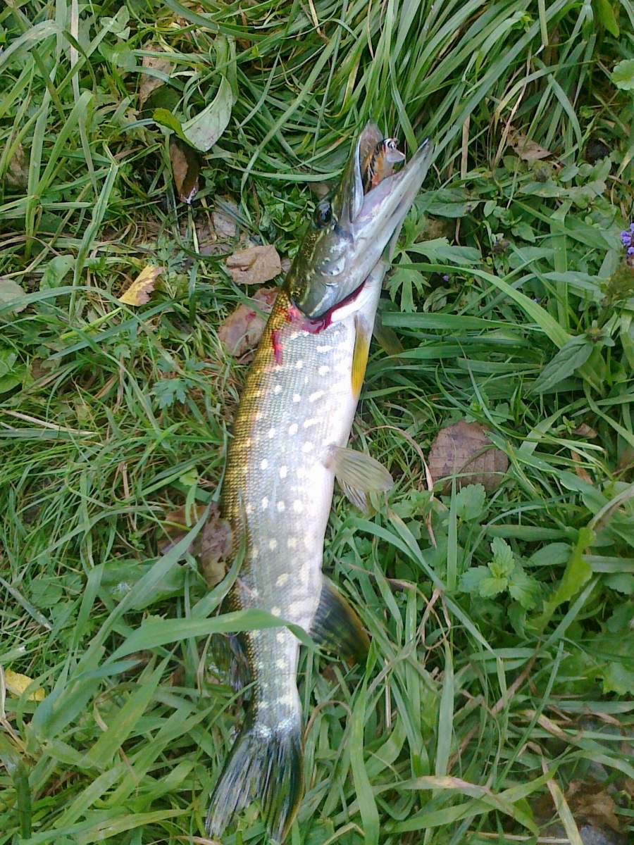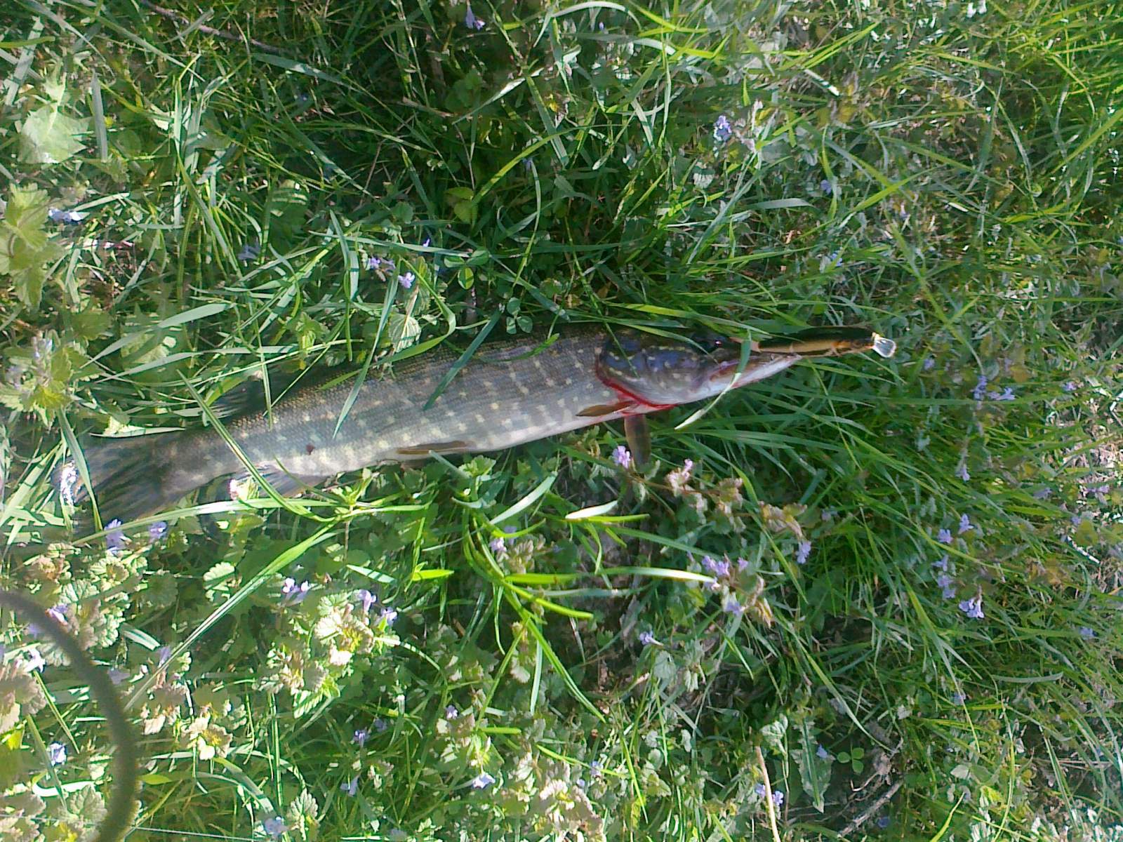 Вчера случайно очутился на небольшом рукотворном озерце, времени на всё про всё было около часа. По проверенной информации на данном заросшем водоёме водились щука и окунь. Начал с волкеров (полюбил я их за зрелищность:стыдно:), но реакции хищника не последовало..его пассивность наводила на грустные мысли о цифре "0" :hook: Тогда решил использовать Тини Мегаллон на флюрокарбоновом поводке, как самый подходящий по характеристикам в данных условиях. На второй проводке, как всегда на паузе взяла та что поменьше (на первом фото) - но сошла, через два заброса я её всё-таки уговорил:D Фотосессия, и она под недоумевающие взгляды случайных зевак уходит в родную стихию.:gimmefive2: Вторая берёт через несколько забросов и снова на паузе (причём надо отметить что проводку воблера делал максимально медленную) на этот раз приятная тяжесть на том конце спиннинга подтвердила, что щука покрупнее. К сожалению воблер у неё застрял в жабрах и уже при вываживании стало ясно что отпускать её нету никакого смысла..(на фото видно) Поэтому оставил её для зажаркибыгы