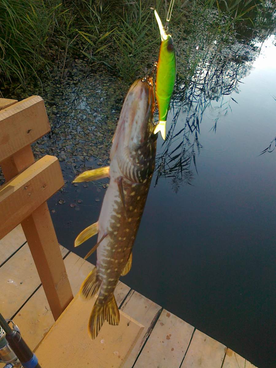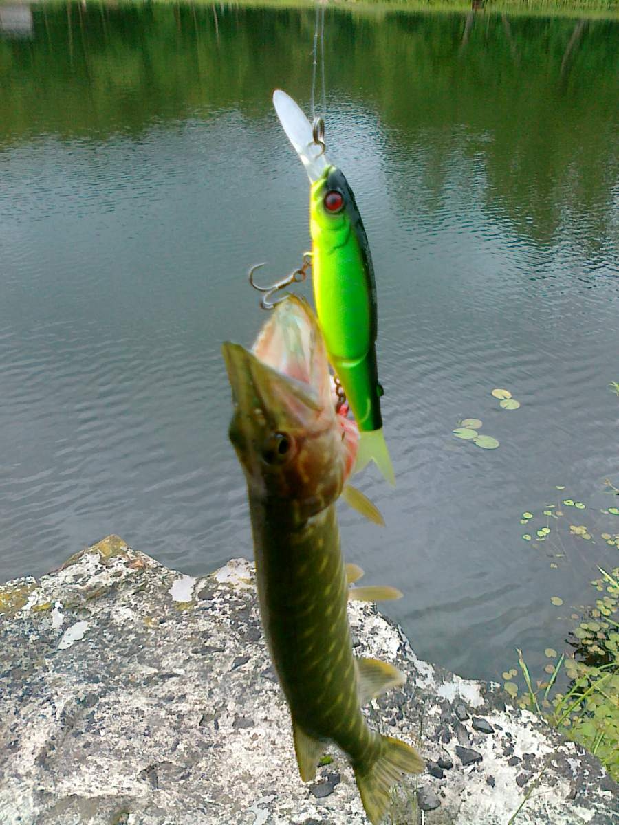 В очередной раз убеждаюсь, что не зря Jackall Tiny Magallon MR занимает место в моей "дежурной" коробке. На что только не пробовал уговорить зубастую (колебалки всех видов и мастей, Зип Бейты, Салмо Слайдер и др.), а вот он буквально на втором забросе соблазнил щучку на уже изрядно протраленом месте (а ещё через заброс взялось что-то очень даже ничего, но сошло - думаю из-за мелких крючков:злой:)