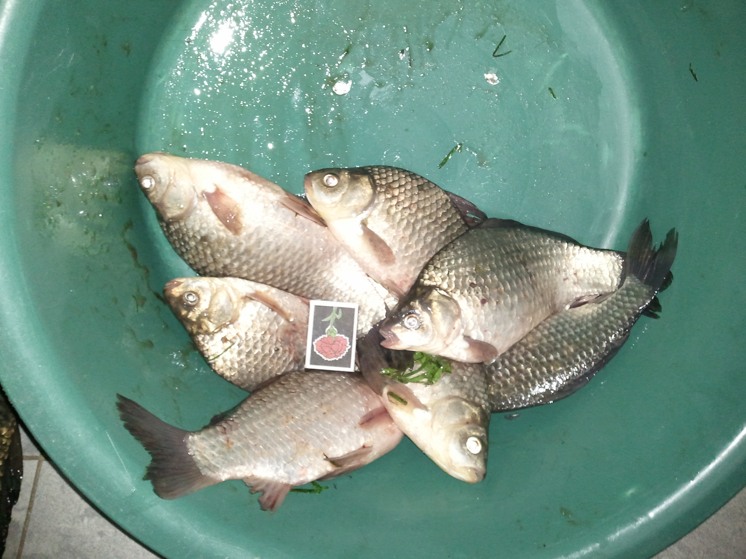 Фото сделал только карасей и дома, так как улов друга совсем невзрачный, то карпики отдал ему.