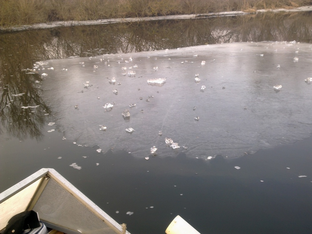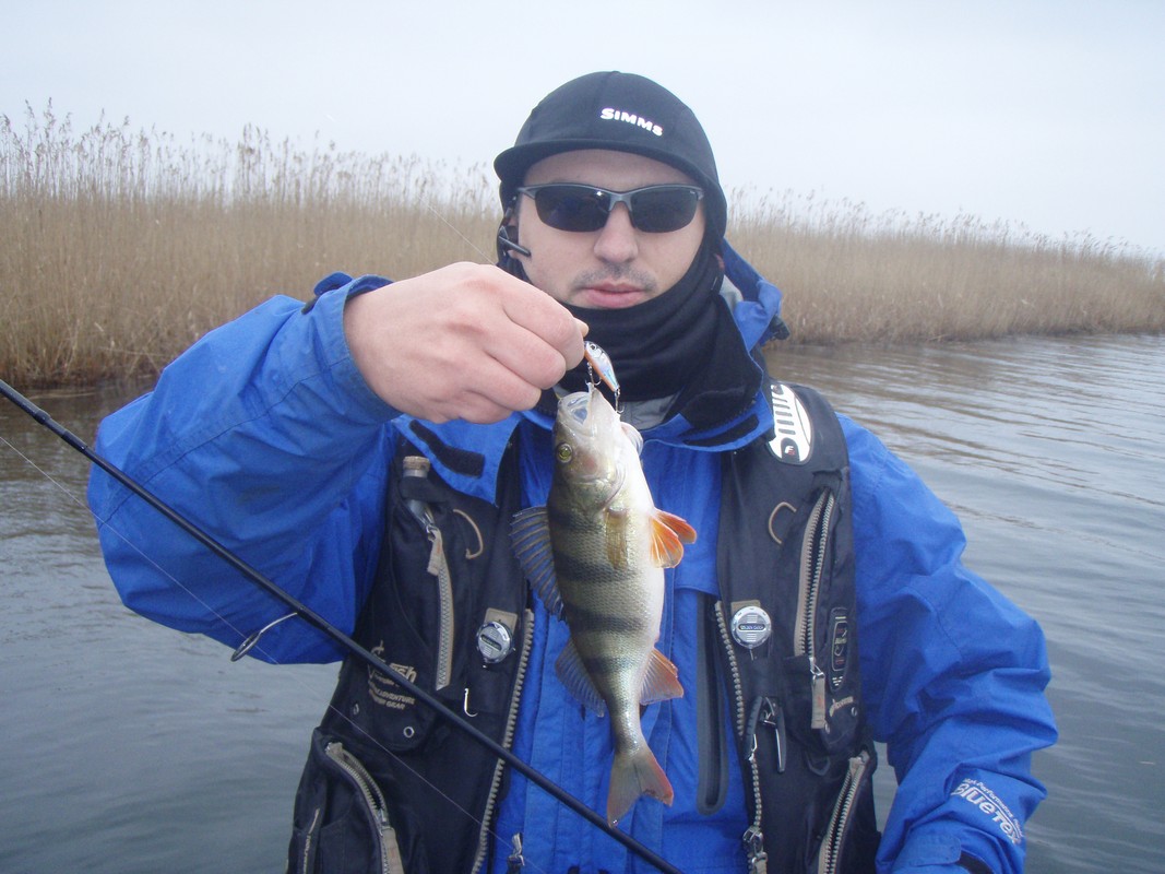 Приехали в 8:00 лодки были уже заряжены сух. паями и термосами с горячим чаем. Запрыгнули в лодки и помчались искать счастья. Начали поиск с провереных ям в надежде на крупный Джек-Пот. Но видать розыгрыша в этот день не было (или у нас были не те лотерейные билеты). Потом пошли искать счастье на мелководье в озерах, по предворительно полученой информации на твичинг за пару дней до этого можно было сделать результат. Но ветер не давал возможности спокойно ловить, а подветреная сторона камыша была скована льдом.