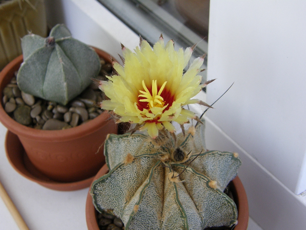 Респект Сергей! астрофитум (на первой фотке) у меня уже отцвел, ток чуть-чуть др.цвет, так как, астрофитум у мя "неопал" (колючки чуть больше чем у твоего)