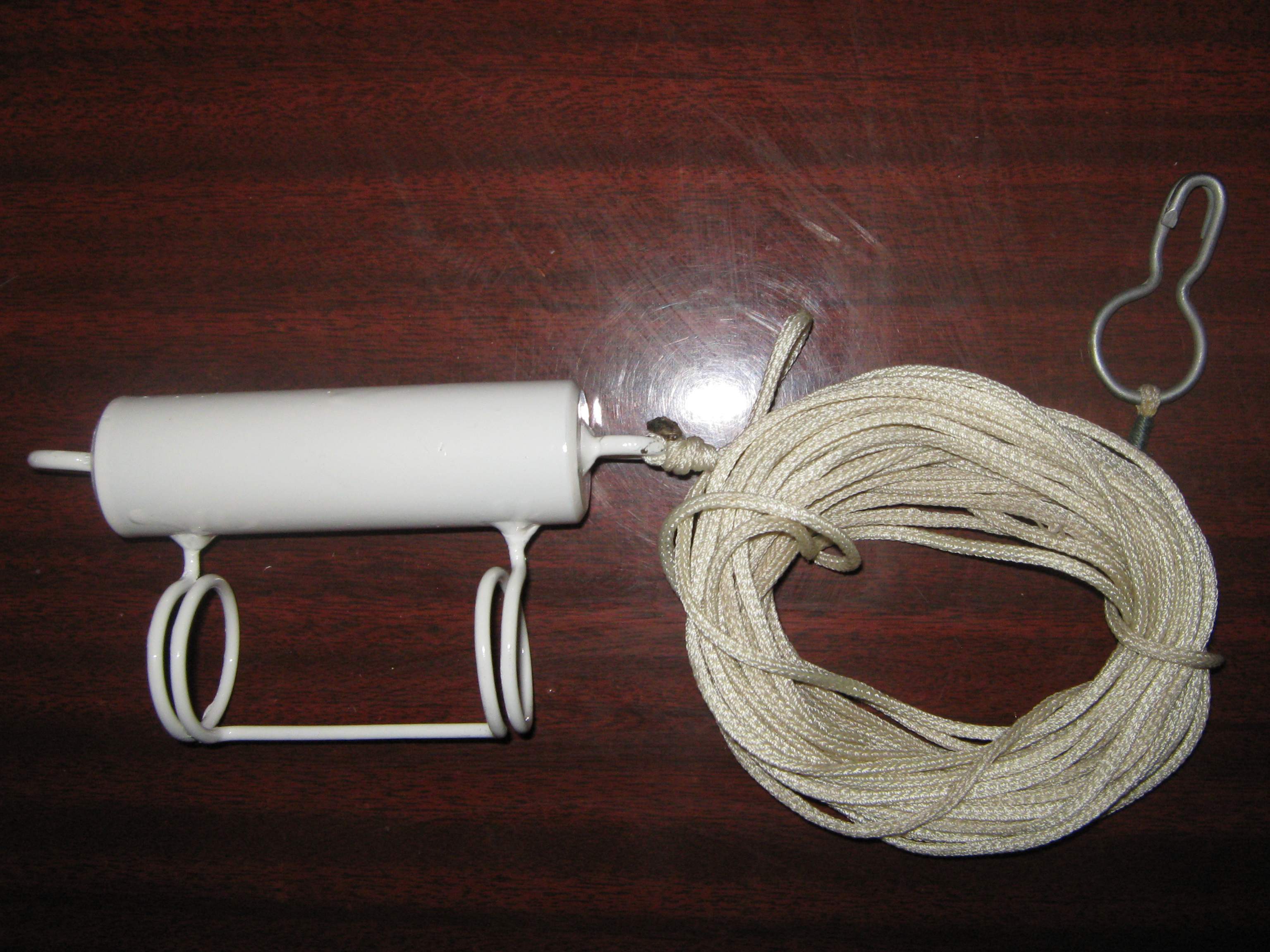 Хочу поделиться своим отцепом. Привязываю к нему верёвку, в случае зацепившегося воблера, открываю карабин и запускаю леску. Ни одного воблера не потерял, очень здорово помагает, даже если не удаётся близко подойти к месту зацепа т.е. под наклонной леской запускаю карабин.