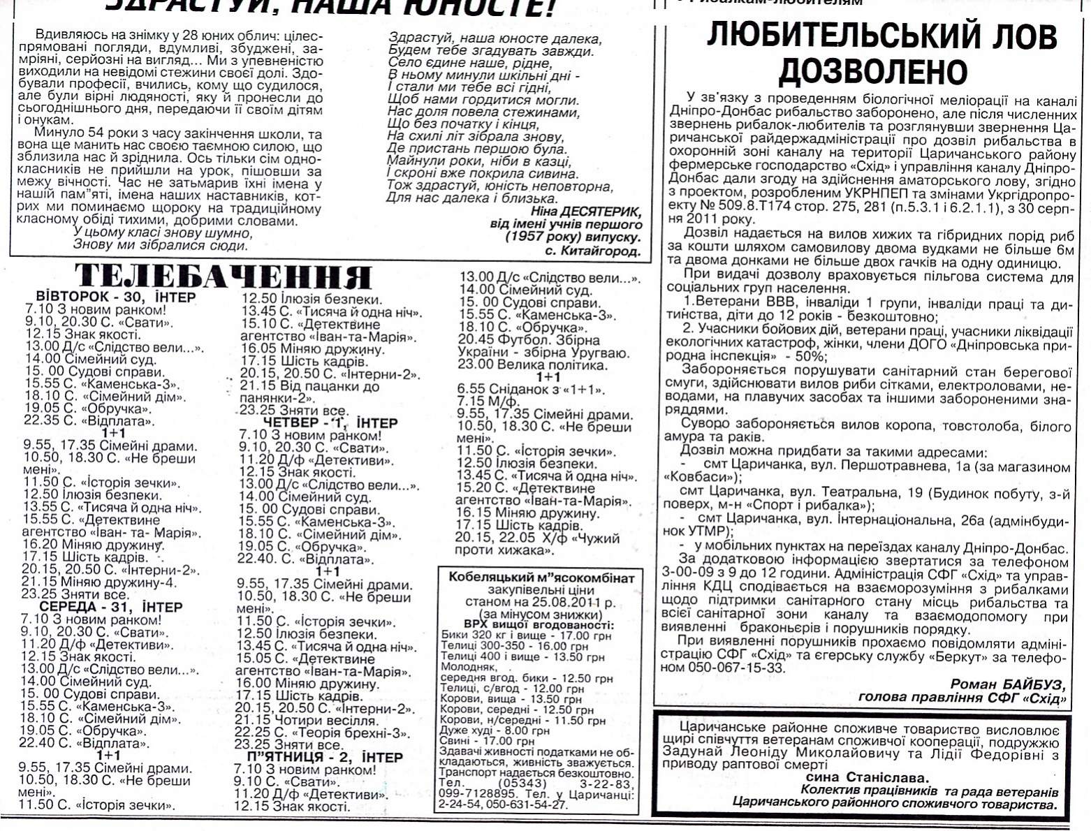 . Ніхто не заперечує проти знаходження рибалок -любителів у зоні каналу, наша організація розробила прийнятні умови для цього. Непорушний закон - підтримувати чистоту, а спіймані риби-меліоранти випускати, вони мають виконати свою місію по очистці каналу, щоб він не перетворювався у застійне болото. Повірте, вирощування малька - далеко не проста справа. Під палючим сонцем і рясним дощем дбають про нього працівники Царичанського рибгоспу на чолі з молодим енергійним директором Олександром Терещенком. До речі, кілька тонн вирощеного ними малька коропа випущено і в Оріль - у Царичанці, біля Шульгівки та в старому руслі річки. «ДПІ» взяла на себе відповідальність за санітарний стан зони каналу. І на законних підставах розробила Правила знаходження в санітарній зоні каналу Дніпра-Донбас для всіх громадян. Рибалкам-любителям, членам громадської організації дозволяється рибалити вудкою - дітям до 14-ти і пенсіонерам, старшим 70-ти років - безкоштовно, є пільги ветеранам війни і праці, «афганцям» і «чорнобильцям». Заяви з двома фото 3 на 4 см і копією паспорта приймаються за адресою смт. Царичанка, вул. Інтернаціональна, 26, або ж за тел. 3-11-85. За цей час лави природоохоронців поповнили близько чотирьохсот чоловік з Петриківського, Царичанського та Магдалинівського районів. Цікава деталь - при перевірці у садках усіх, хто рибалить з квитками, не було жодного коропчука. Тобто люди розуміють важливість біомеліорації і підтримують її. А ще завдяки спільним зусиллям не стало підпалів та вирубок лісу обабіч водойми.