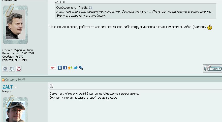 От вы прям подерётесь))) Айковкие палки действительно имеют особенность по центровке. Так как центр тяжести смещён к вершинке. В новых моделях эта особенность практически отсутствует. В давние времена Айко выпускала и катушки в том числе, и достаточно тяжелые (на базе Риоби) Скорее всего и пытались отбалансировать снасть в целом. Так что не спорьте, истина как всегда по середине. Ни хвоста. P.S. На следующей неделе стартуют интересные цены на Айко. https://www.facebook.com/groups/1116873545008071/ Сорри за рекламу)))