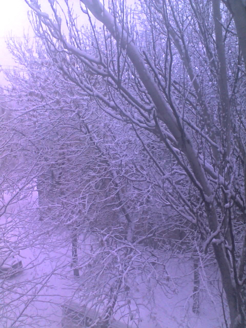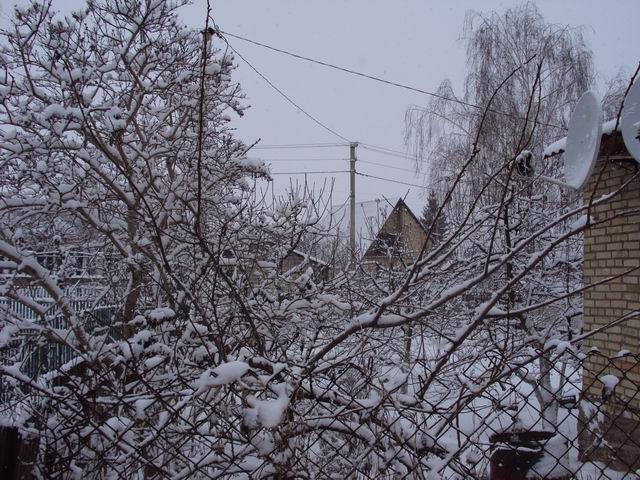 Сегодня утром увидел в окне как прикольно висит снег на ветках: