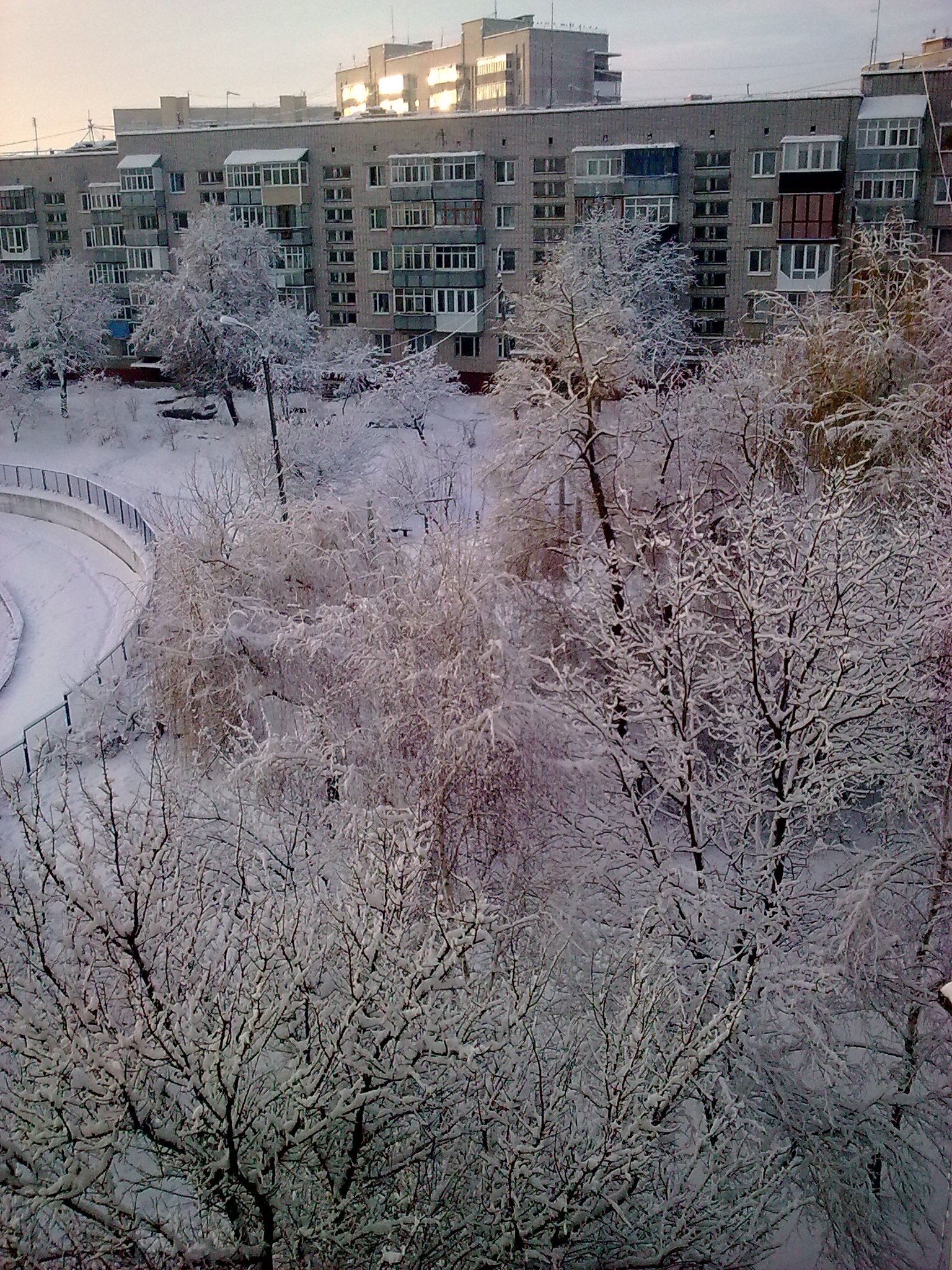Казалось в этом году зимы не будет. Но сегодня утром, выглянув с балкона, увидел вот такую красоту и не смог удержаться чтобы не запечатлить на фото.