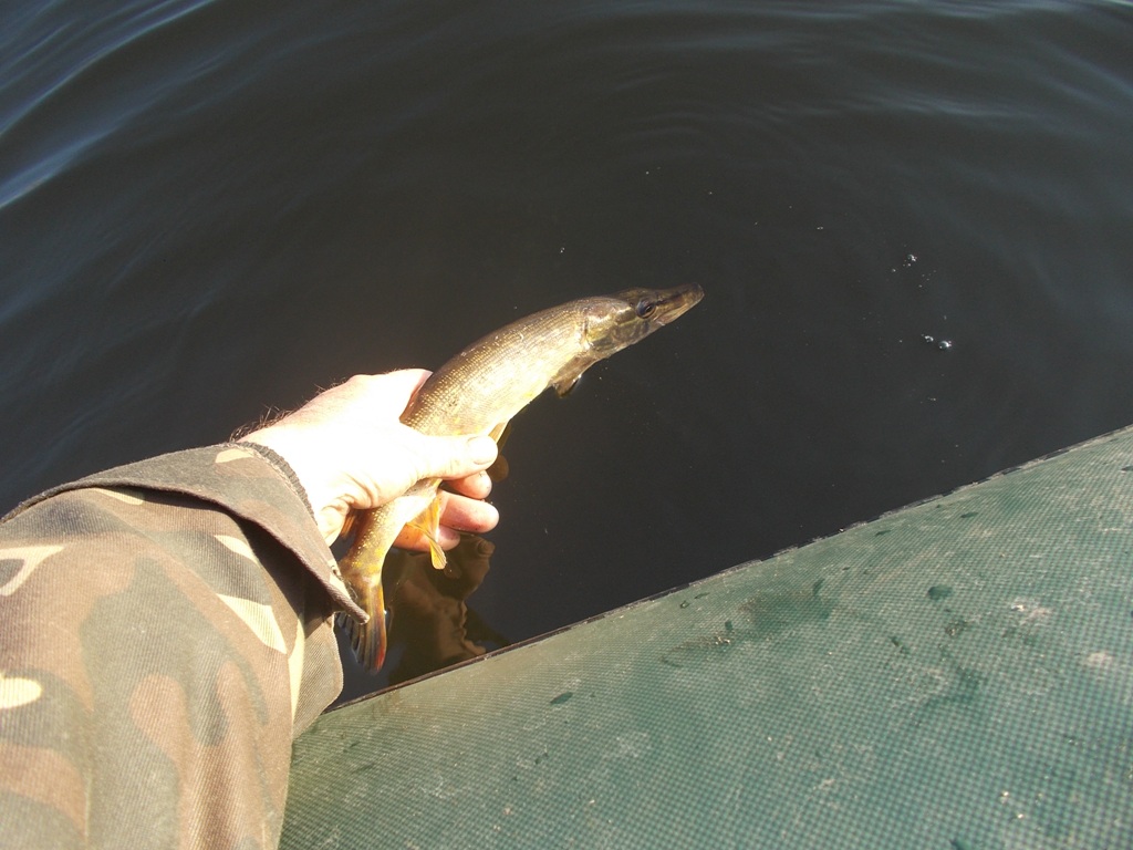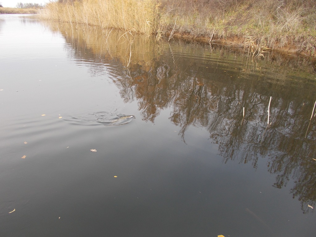 До 14-30 помимо дискуссий с Пежо об особенностях национальной политики, рыбалки и проч. всего-навсего один промах и один ударчик. А вот с 14-30 опять начался т.н. "выход", с одного якоря 3 шучки , жаль только одна еле зачетная, но все равно приятно. Итого около 4 кил на жареху уехало в г. Павлоград. Работал флеш-минноу натуральной расцветки (карт-бланш камрада Саня Терновский). По руслу щука почему-то напрочь отсутствует, караулит в камыше. Живец хорошо работал у местных. Троллингёры с Днепро-Кучмовска тихонько отсо ..ли.
