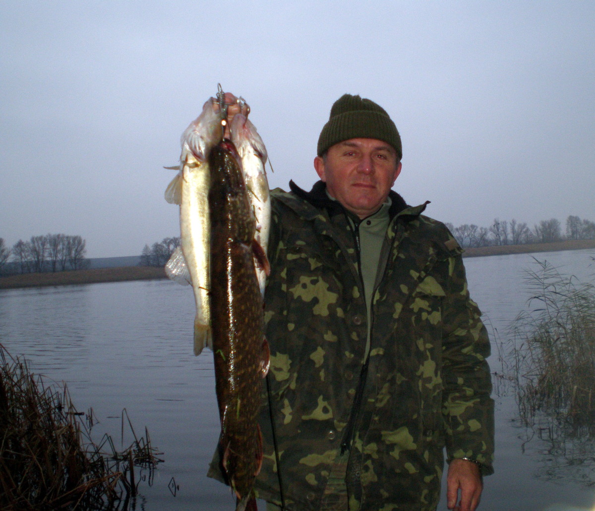 Что-то на сайте тихо стало, Видимо коллеги уже ждут зимнюю рыбалку, А я вот в субботу 15 ноября все-таки вышел на судака на Синюху. В принципе рыбалкой доволен. 6 зачетных судаков, 4 схода и еще 5-6 ударов. Перебрал почти всю резину, лучше всего судак брал на Predator 3 фиолетового цвета с блестками. На глубине 8 метров взяла щука, но к сожалению не выдержал вертлюжок.