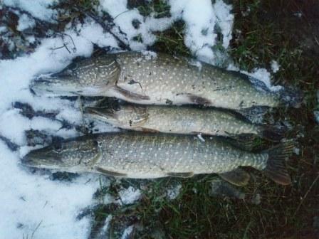 В прошлое воскресенье на Мертвом Донце разловил слайдера, об этом факте уже писал. С нетерпением ждал эти выходные, по ходу искал напарника, поскольку знал куда и зачем поеду. Все сложилось замечательно, и колеса нашлись и напарники. Вот итог воскресенья, да и еще, вся рыба была поймана на участке берега длиной метров 60-70. К берегу ветром прибило плавающие растения(незнаю названия) от заморозков они почернели, под ними и стоит щука.Воблер от Ю-ЗУРИ 3Д проводил с чистого места по этим растениям, тут и происходили поклевки.