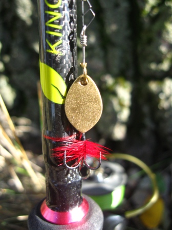 Вчера был на "Мертвом" и за весь день как сглазили пять поклевок и результат ноль. Но одну поклевку реализовал, но остановить щучку даже не смог, в итоге она промотала метров 50 вернее всего мотнула головой и срезала шнур. Адреналина во все места получил и свою самодельную "лахудру" можно с черной ленточкой выставлять с надписью "Она была уловистой". Фотку одну сделал (рыбы не поймал), а так подарок гриболовам, меня цвет удивил