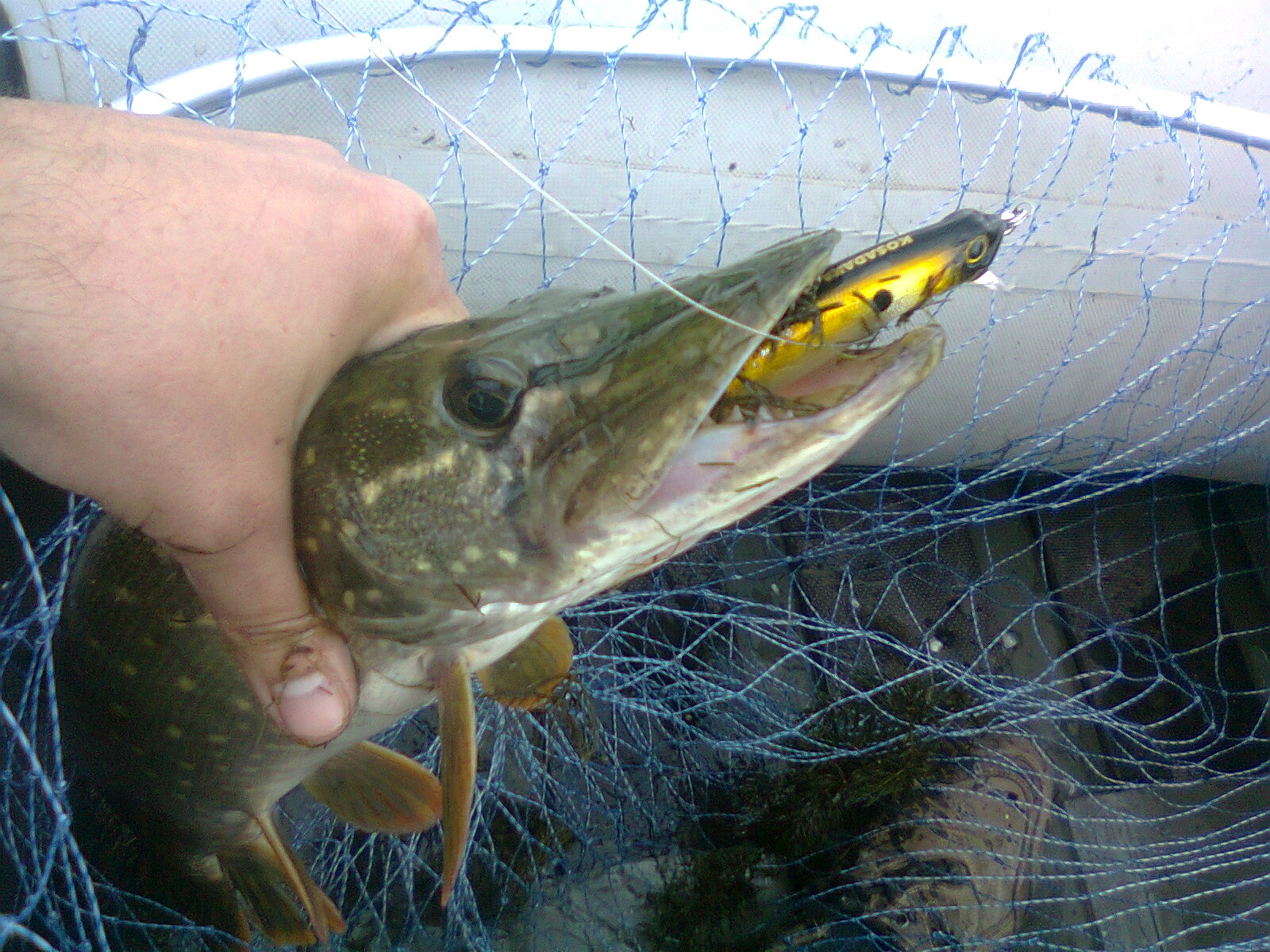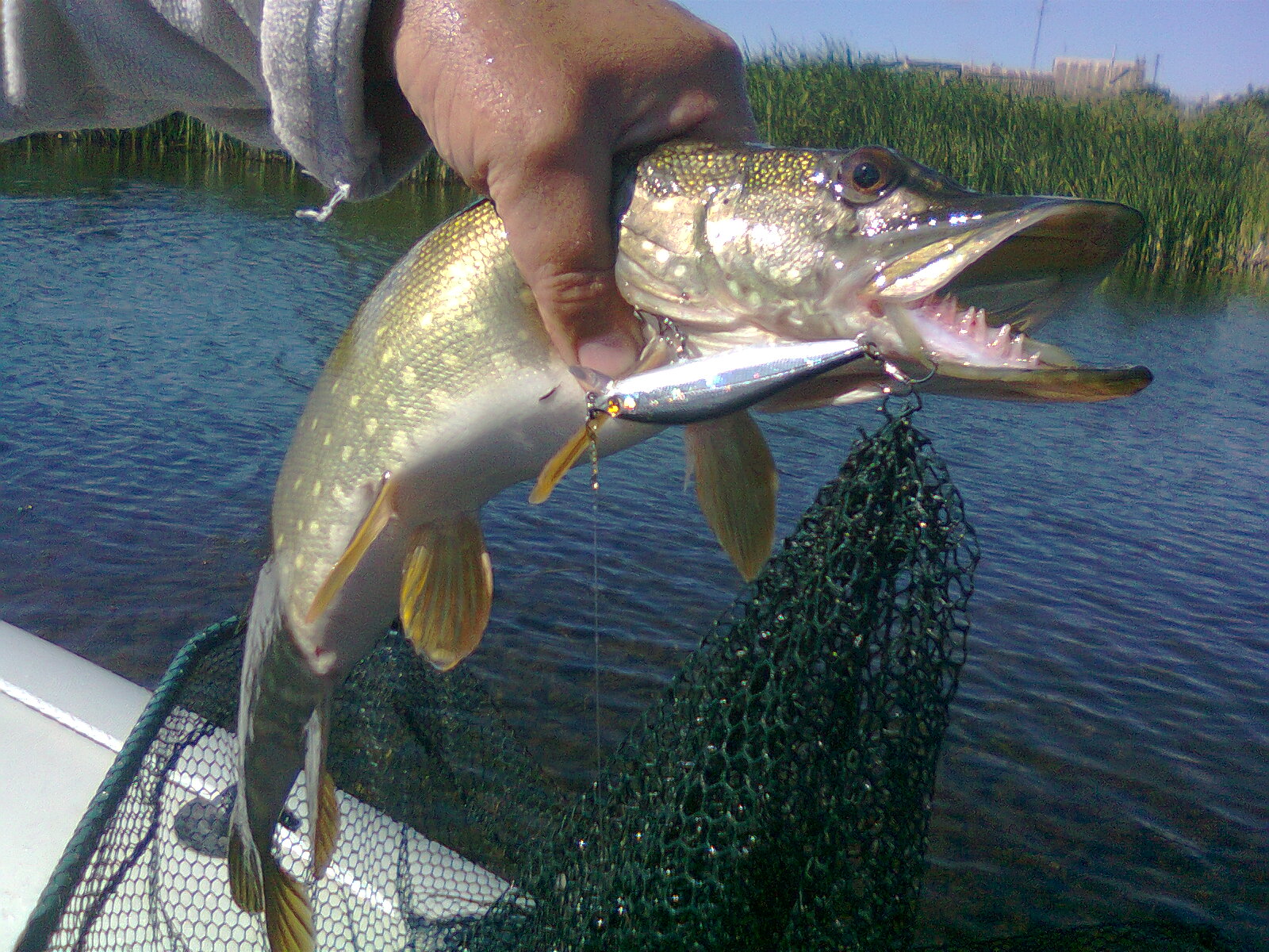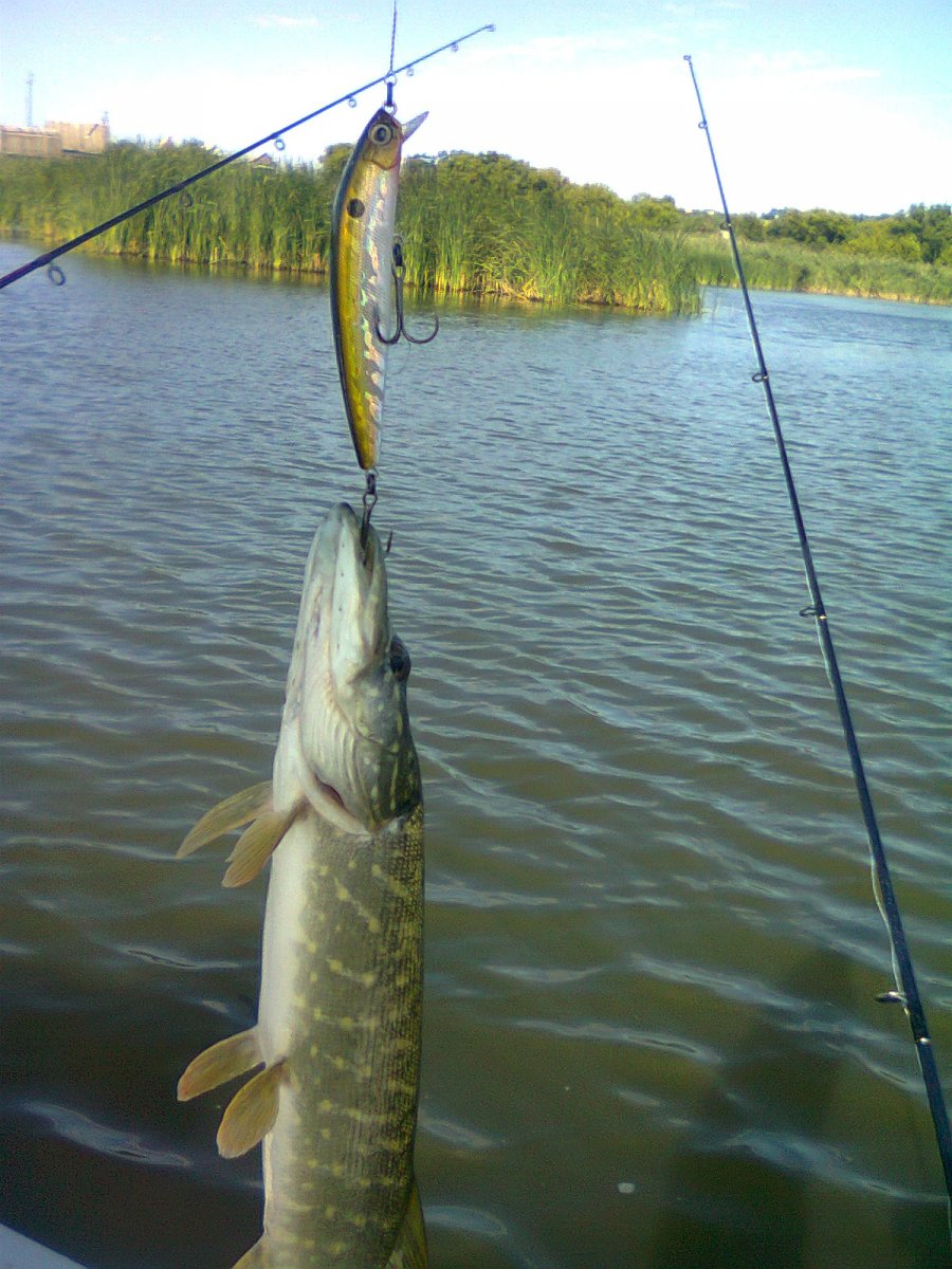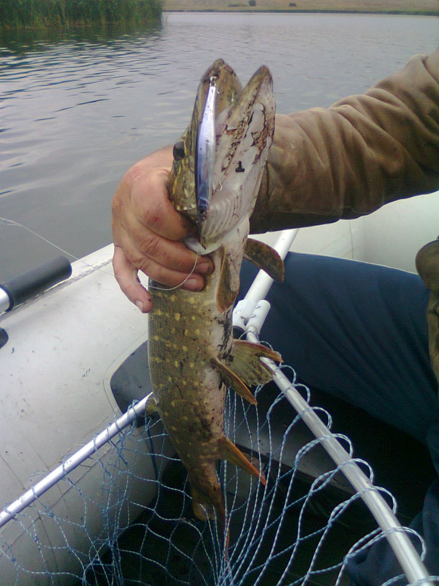 Были вчера и сегодня. Оба дня очень схожи, как по погоде, так и по активности зубатой. На воде с 9:00.Пасмурно,ветерок,рябь,а сегодня и вовсе срывался дождик. Активность Щуки довольно высока, но при этом высока и требовательность к проводке. Активная проводка её никак не прильщала, о чем красноречиво говорят результаты встречных спиннингистов, которые привыкли ловить тут крэнками-нулевиками банальной равномеркой. Наш же экипаж вызывал неподдельное удивление у последних, регулярными поклёвками, зрелищными выходами, и прочими, приятными искушенной душе моментами. Работал «умирающий» твич. Аккуратный заброс в прогальчик, небольшая пауза, смык-смык- БАБАХ!БУРУН,БРЫЗГИ,СВЕЧИ!Адреналину МОРЕ! Порядка двадцати поклёвок, были и промахи и сходы, и дельфиньи прыжки, много утоплено! Красотень короче!А виновники торжества: ShallowFirst, Косадаковский DedFloat,BentMinnow 86F! От последнего я вообще в восторге! Любопытная закономерность-вся самая крупная рыба поймана именно на эту приманку. До смешного – батя плюётся, что не поклёвка, то полкилушка или около того(на Косадаку), у меня на бент – кг или больше!Вот как-то так! Вобщем всем удачных рыбалок ,злых поклевок и хорошего настроения! Спасибо за внимание, увидимся на рыбалке!