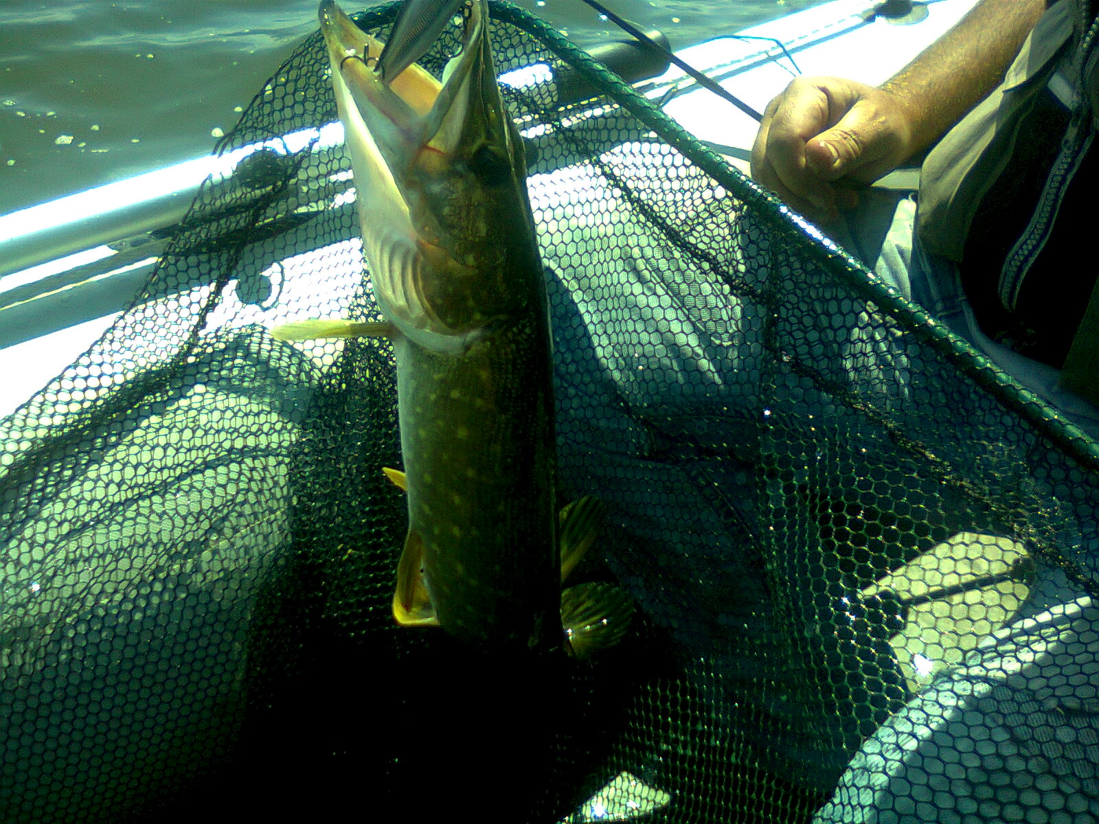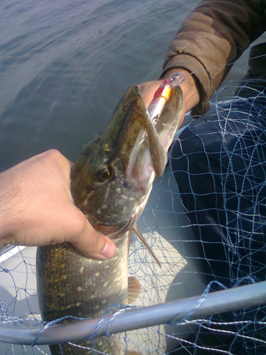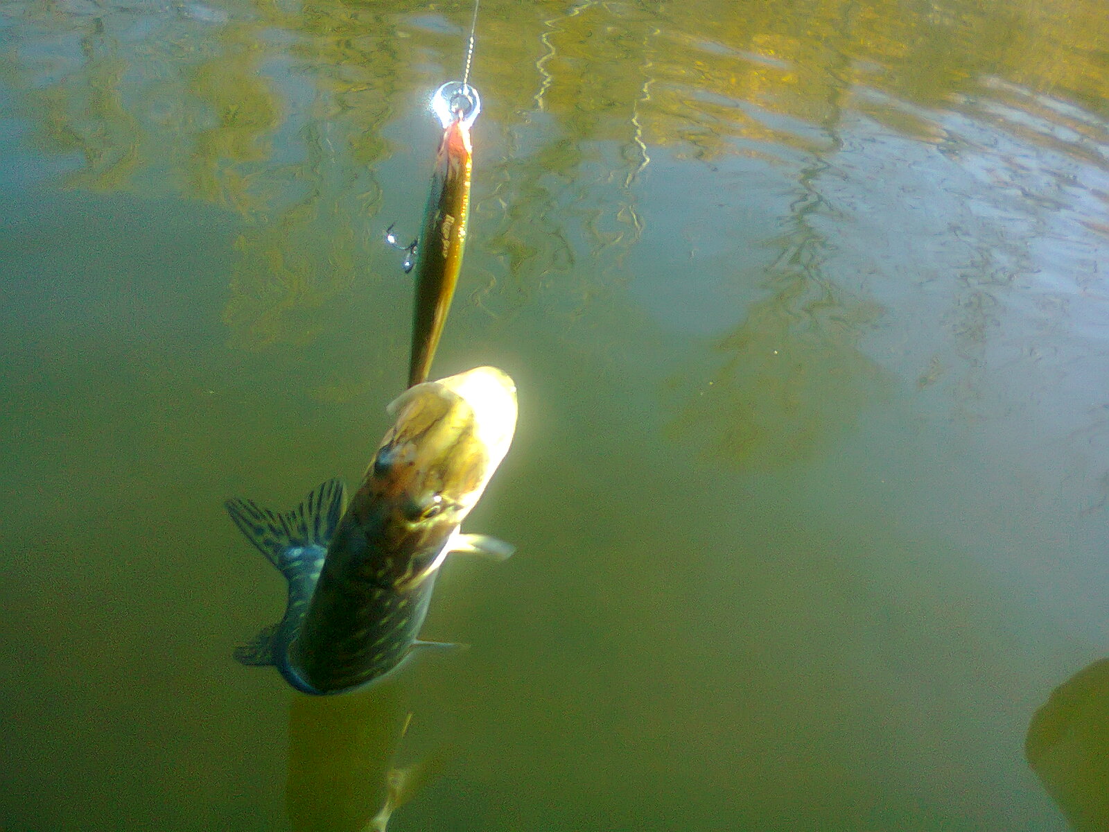 Были вчера и сегодня. Оба дня очень схожи, как по погоде, так и по активности зубатой. На воде с 9:00.Пасмурно,ветерок,рябь,а сегодня и вовсе срывался дождик. Активность Щуки довольно высока, но при этом высока и требовательность к проводке. Активная проводка её никак не прильщала, о чем красноречиво говорят результаты встречных спиннингистов, которые привыкли ловить тут крэнками-нулевиками банальной равномеркой. Наш же экипаж вызывал неподдельное удивление у последних, регулярными поклёвками, зрелищными выходами, и прочими, приятными искушенной душе моментами. Работал «умирающий» твич. Аккуратный заброс в прогальчик, небольшая пауза, смык-смык- БАБАХ!БУРУН,БРЫЗГИ,СВЕЧИ!Адреналину МОРЕ! Порядка двадцати поклёвок, были и промахи и сходы, и дельфиньи прыжки, много утоплено! Красотень короче!А виновники торжества: ShallowFirst, Косадаковский DedFloat,BentMinnow 86F! От последнего я вообще в восторге! Любопытная закономерность-вся самая крупная рыба поймана именно на эту приманку. До смешного – батя плюётся, что не поклёвка, то полкилушка или около того(на Косадаку), у меня на бент – кг или больше!Вот как-то так! Вобщем всем удачных рыбалок ,злых поклевок и хорошего настроения! Спасибо за внимание, увидимся на рыбалке!